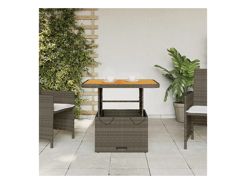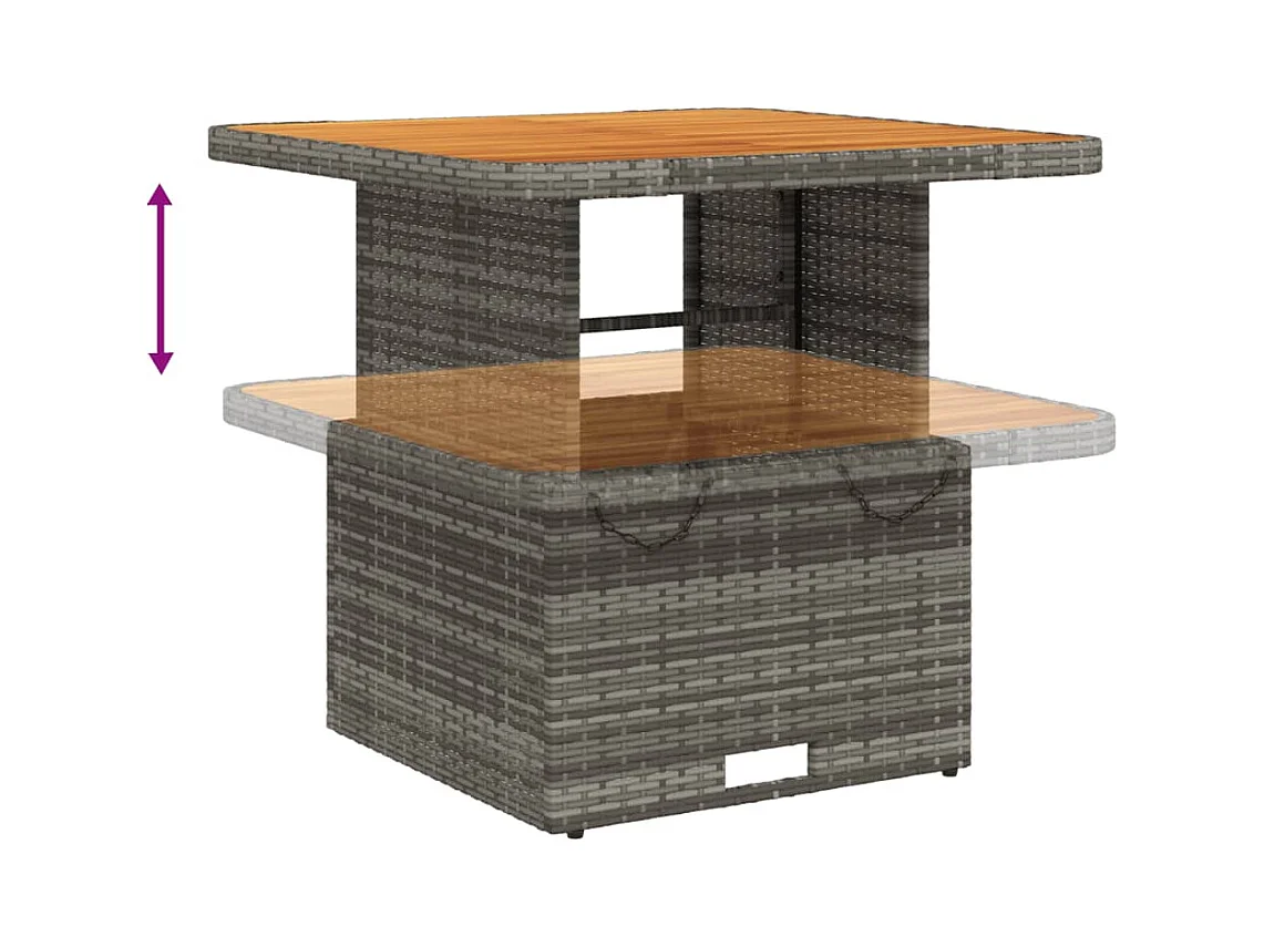Gartentisch mit Akazienholz-Platte Grau 80x80x75 cm Poly Rattan