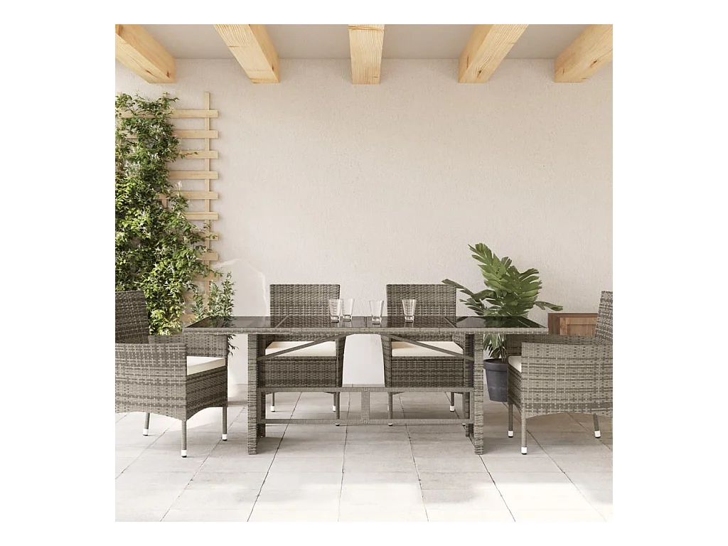 Gartentisch mit Glasplatte Grau 190x90x75 cm Poly Rattan