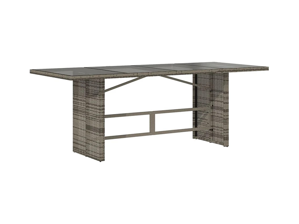 Gartentisch mit Glasplatte Grau 190x80x75 cm Poly Rattan