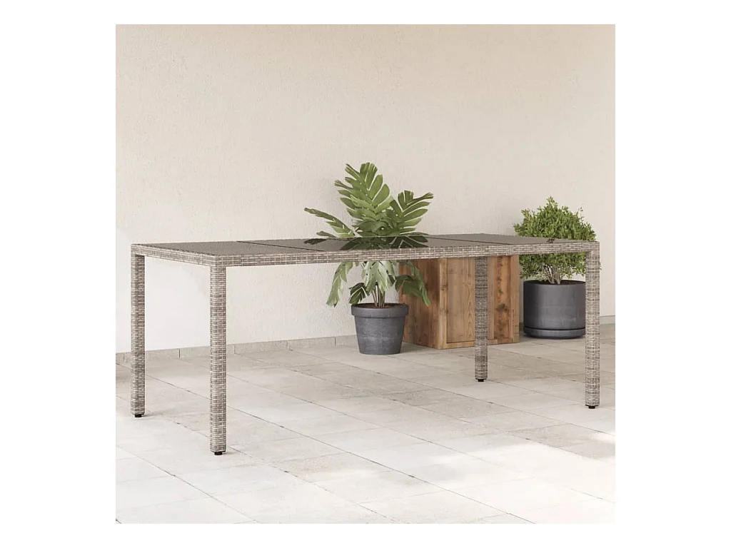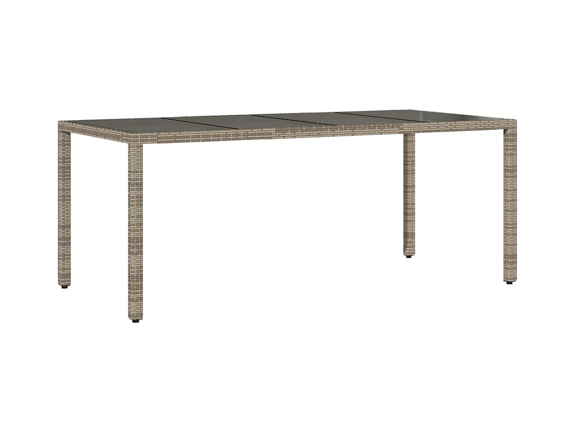 Gartentisch mit Glasplatte Grau 190x90x75 cm Poly Rattan