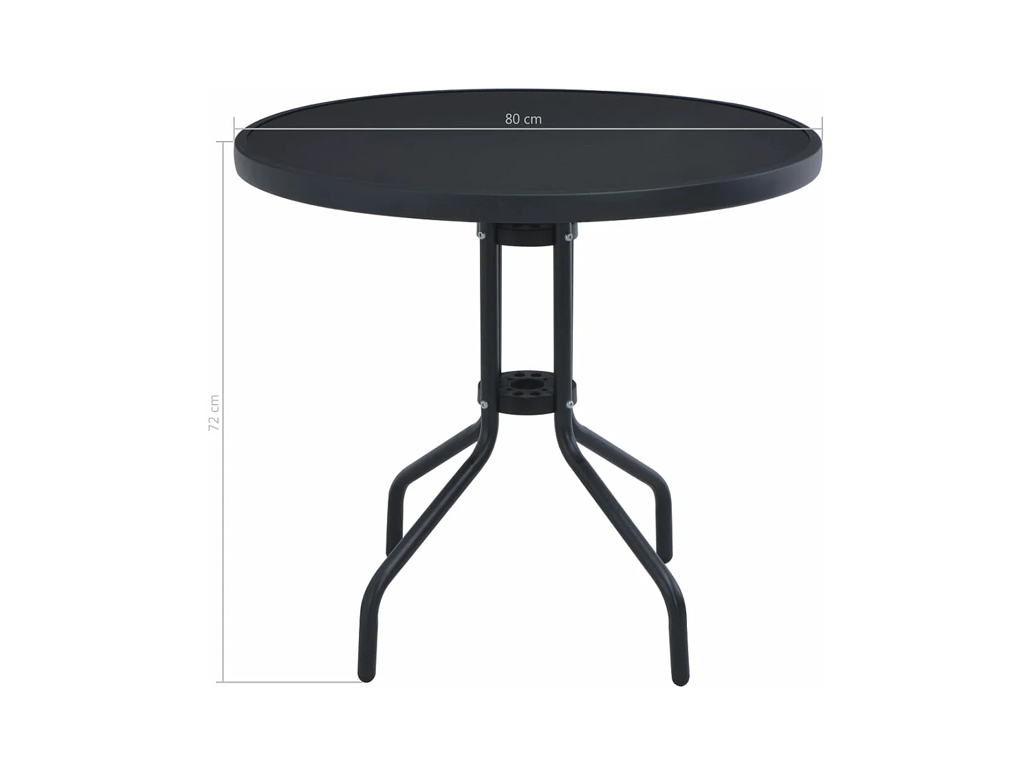 Gartentisch Schwarz 80 cm Stahl und Glas