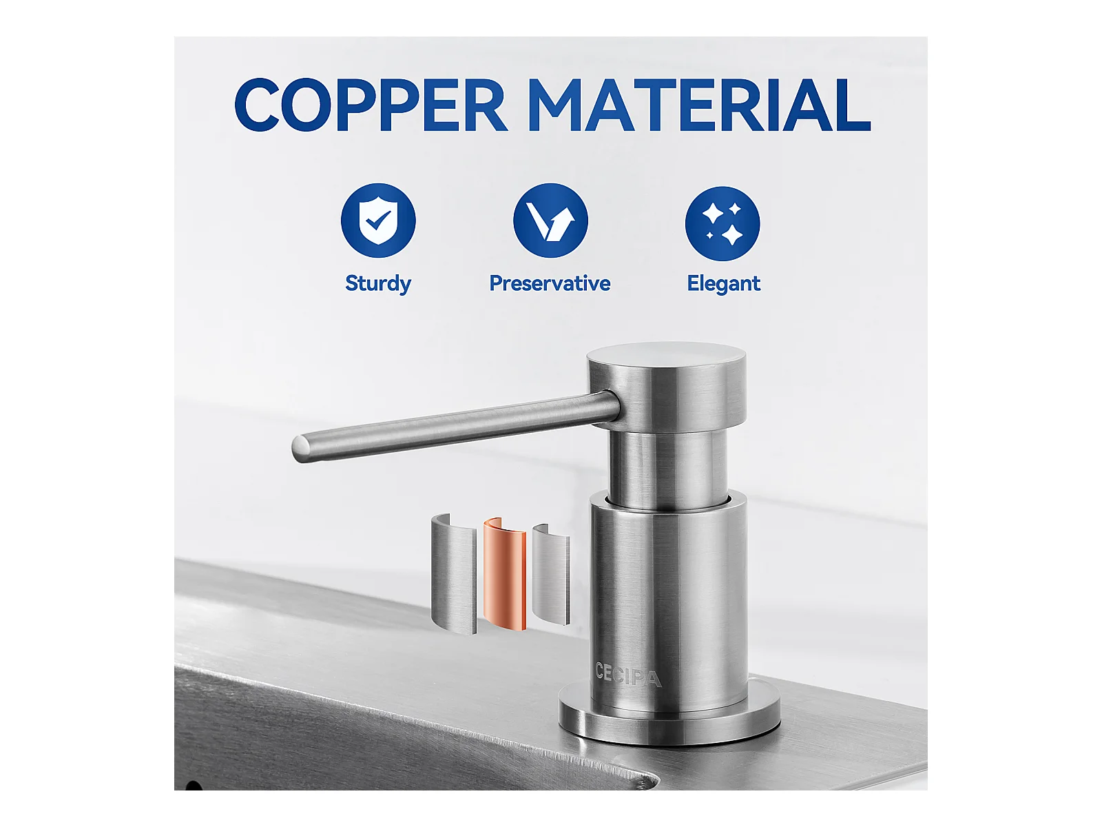 Gebürsteter Küchenseifenspender, Küchenspüle-Seifenspender mit 300-ml-Behälter + 1,25 m Silikon-Verlängerungsschlauch