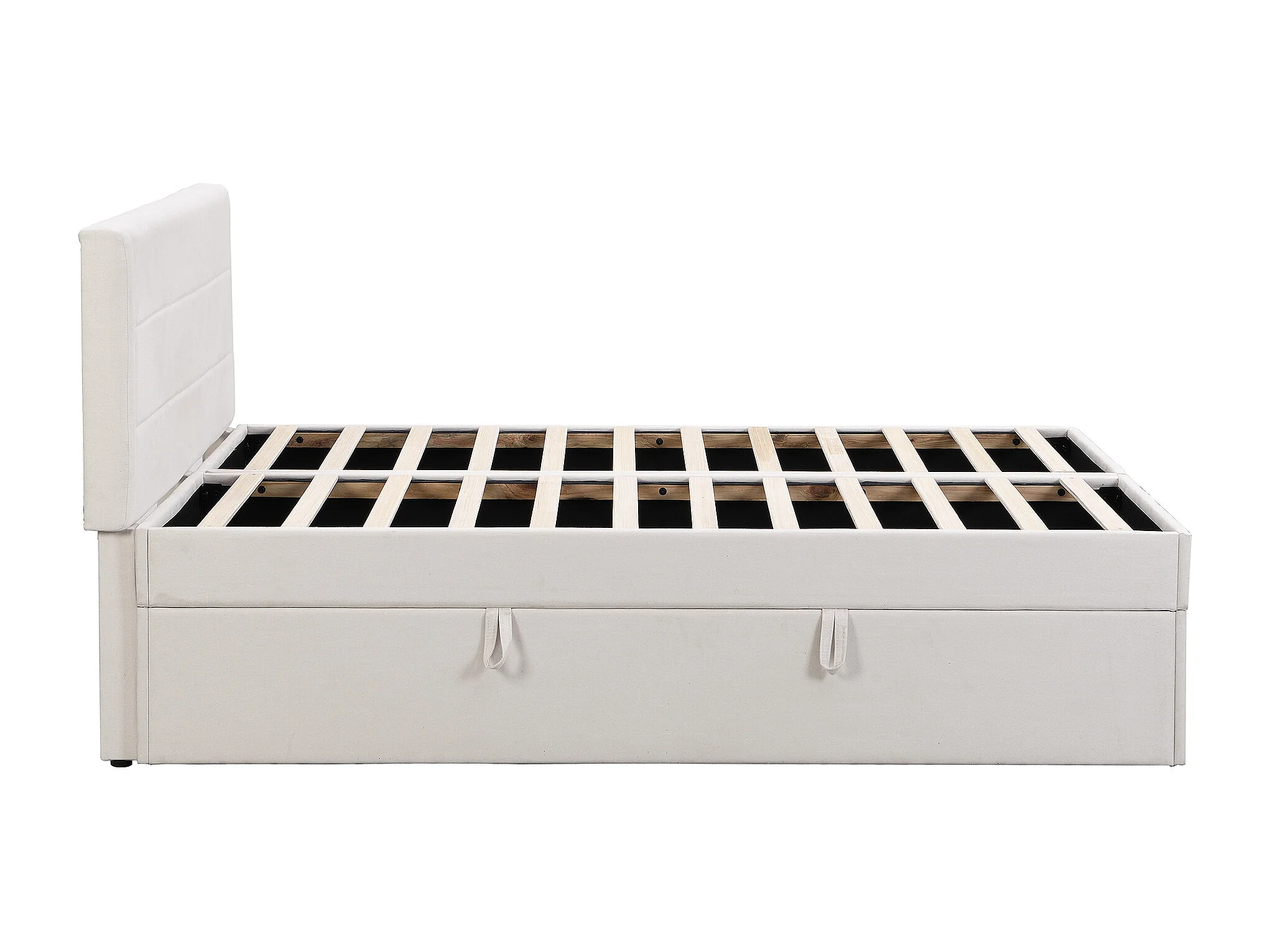 Gepolstertes Stauraumbett – 140 x 200 cm – beidseitig zu öffnen – Holz + MDF + Leinen – beige