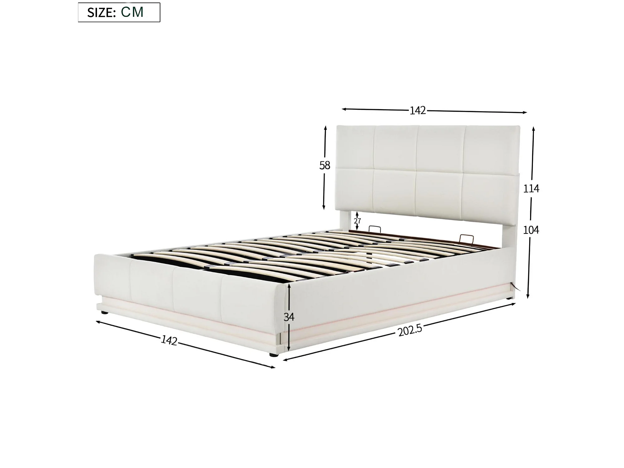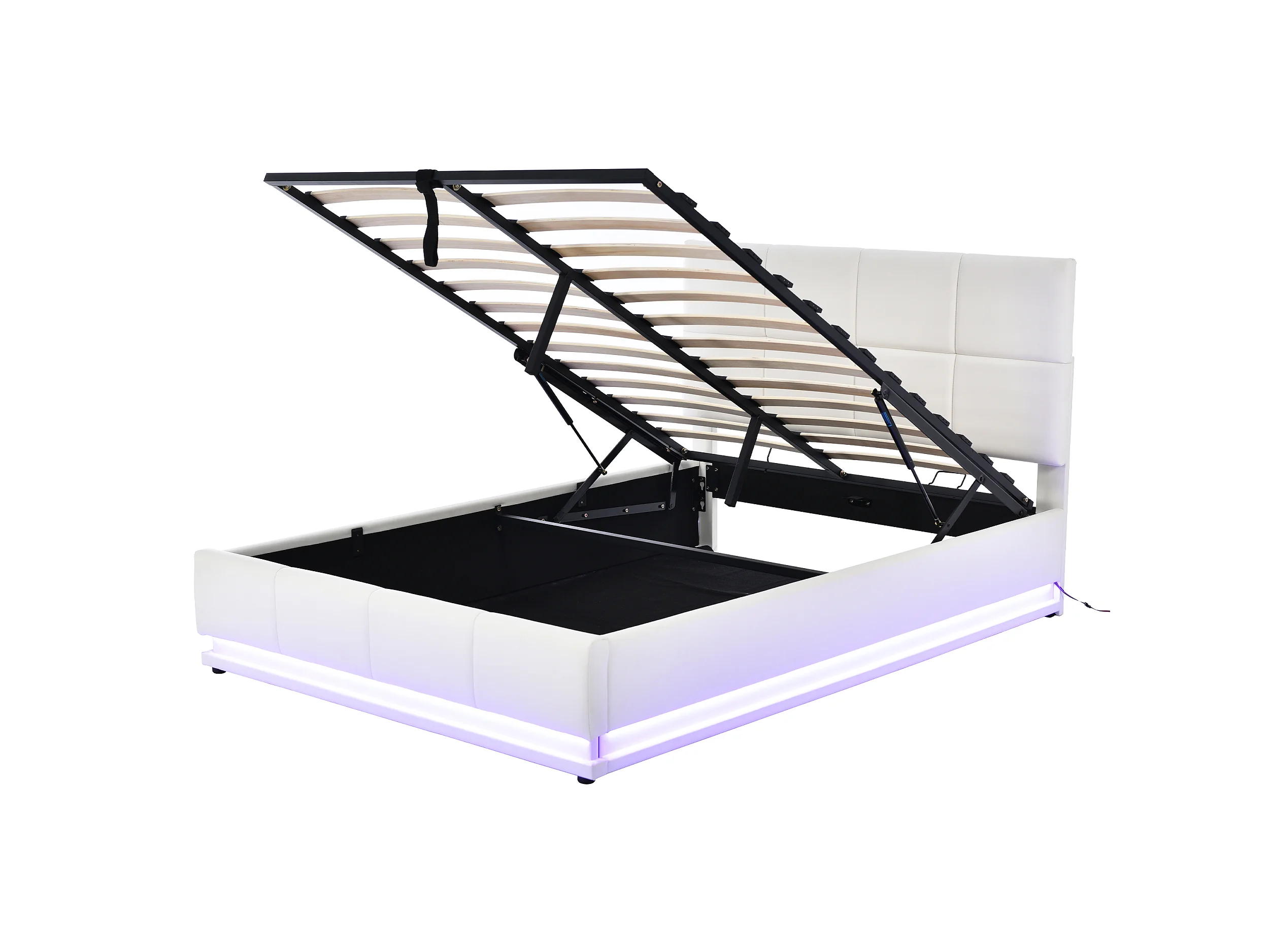 Gepolstertes Stauraumbett 140x200 cm mit LED-Beleuchtung – aus Kunstleder – Weiß