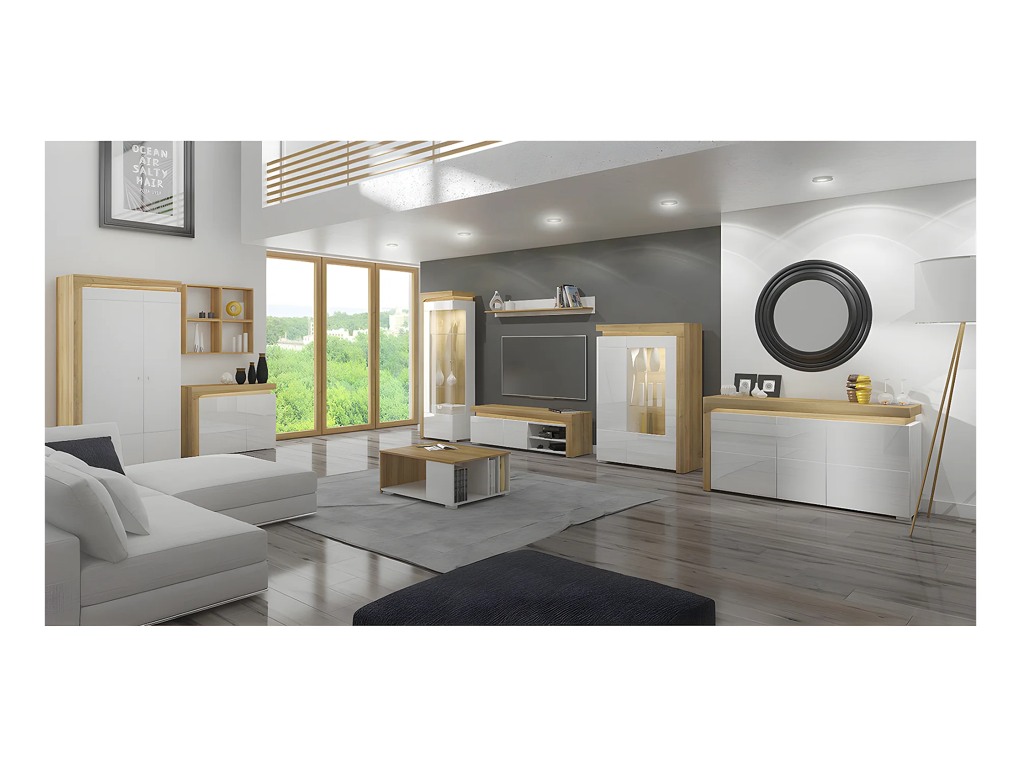 2-türige Kommode mit 2 Schubladen und LEDs Helios Lackweiß und Holz