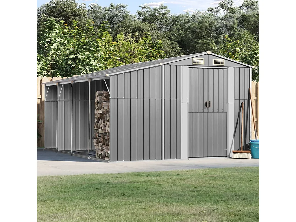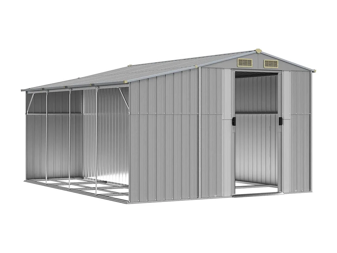 Graues Gartenhäuschen 277x365,5x179 cm aus verzinktem Stahl