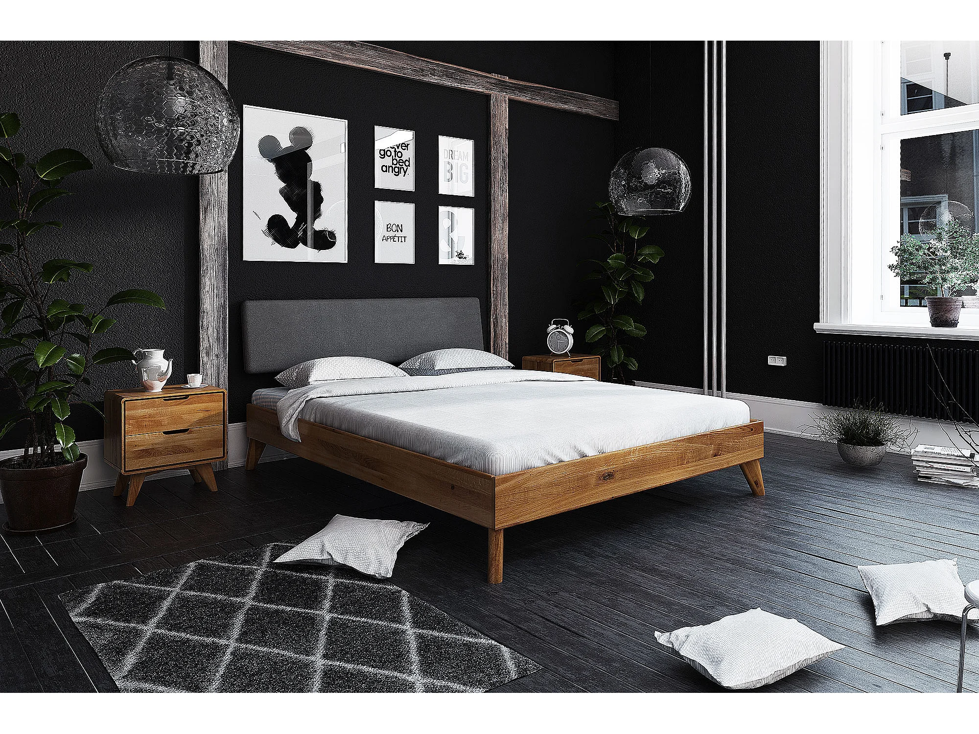 GREG - Bett mit Polsterkopfteil aus Wildeiche, naturgeölt 160x200