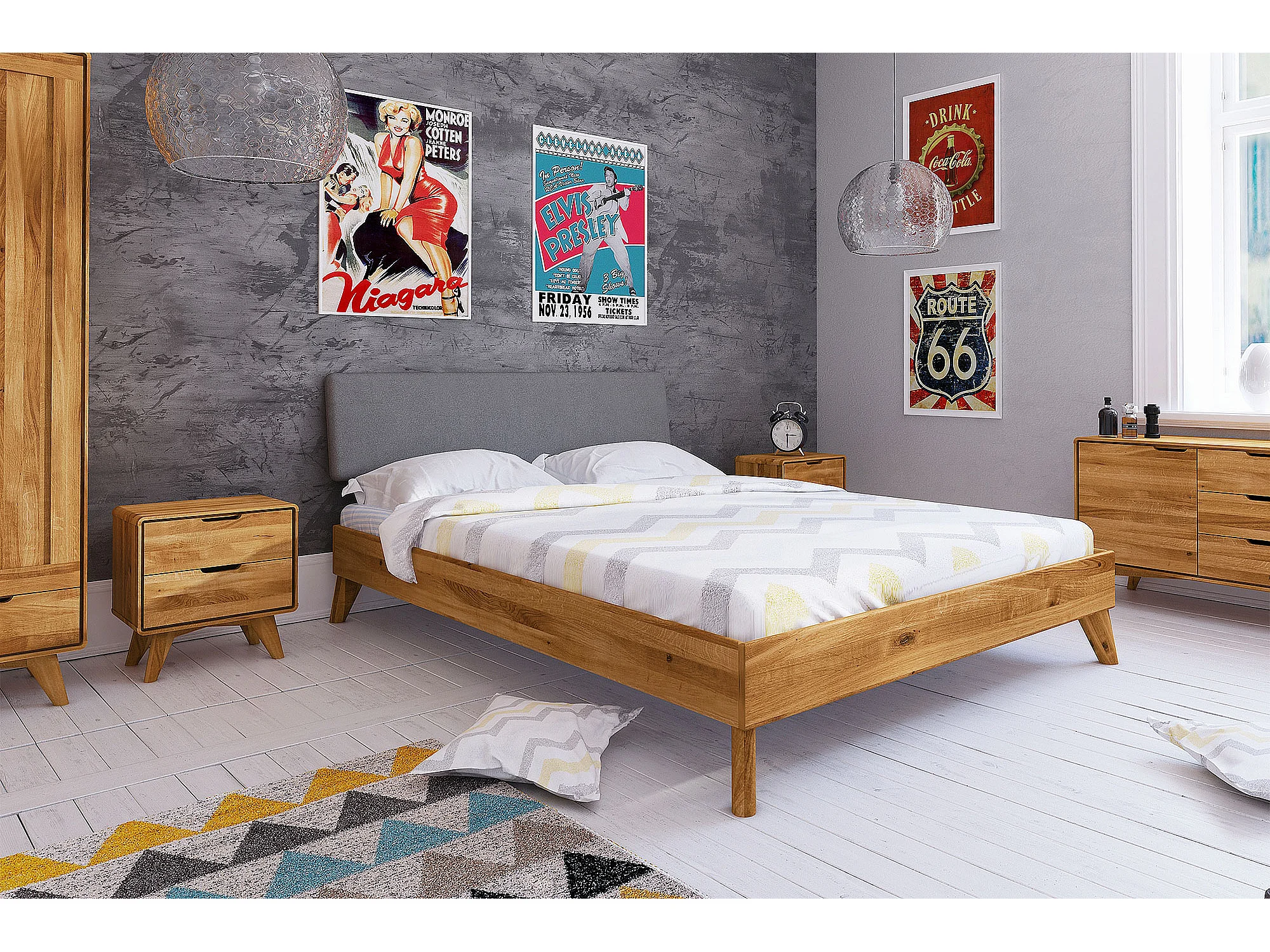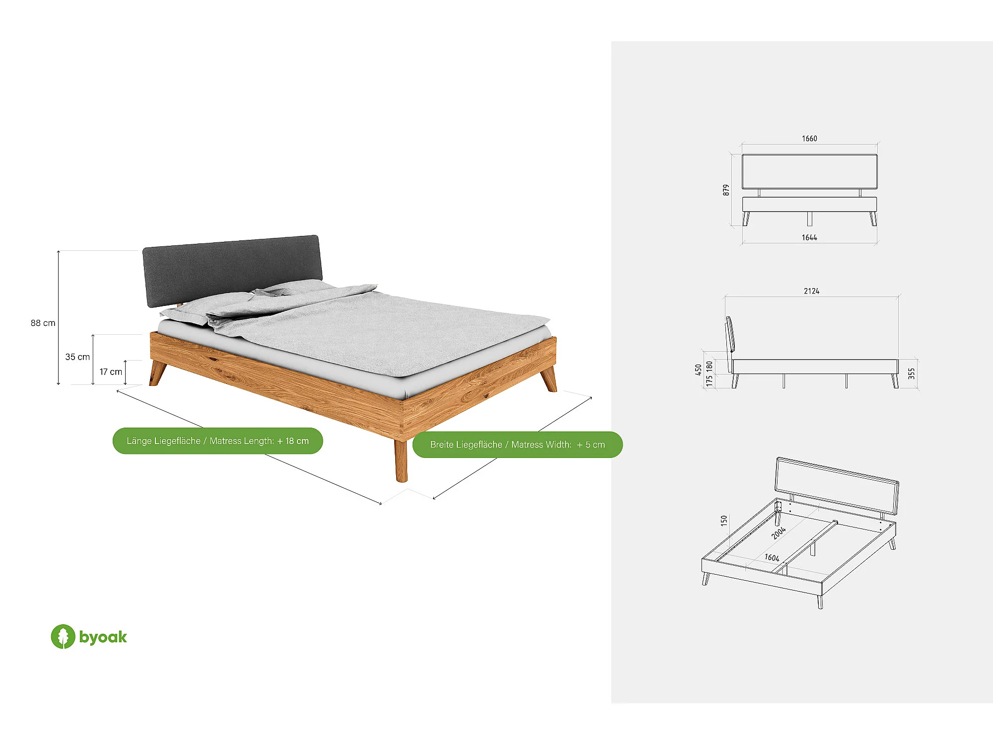 GREG - Bett mit Polsterkopfteil aus Wildeiche, naturgeölt 180x200