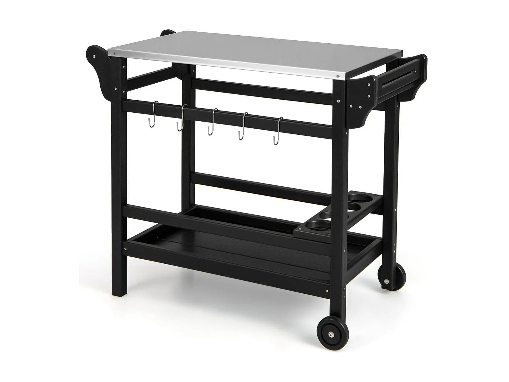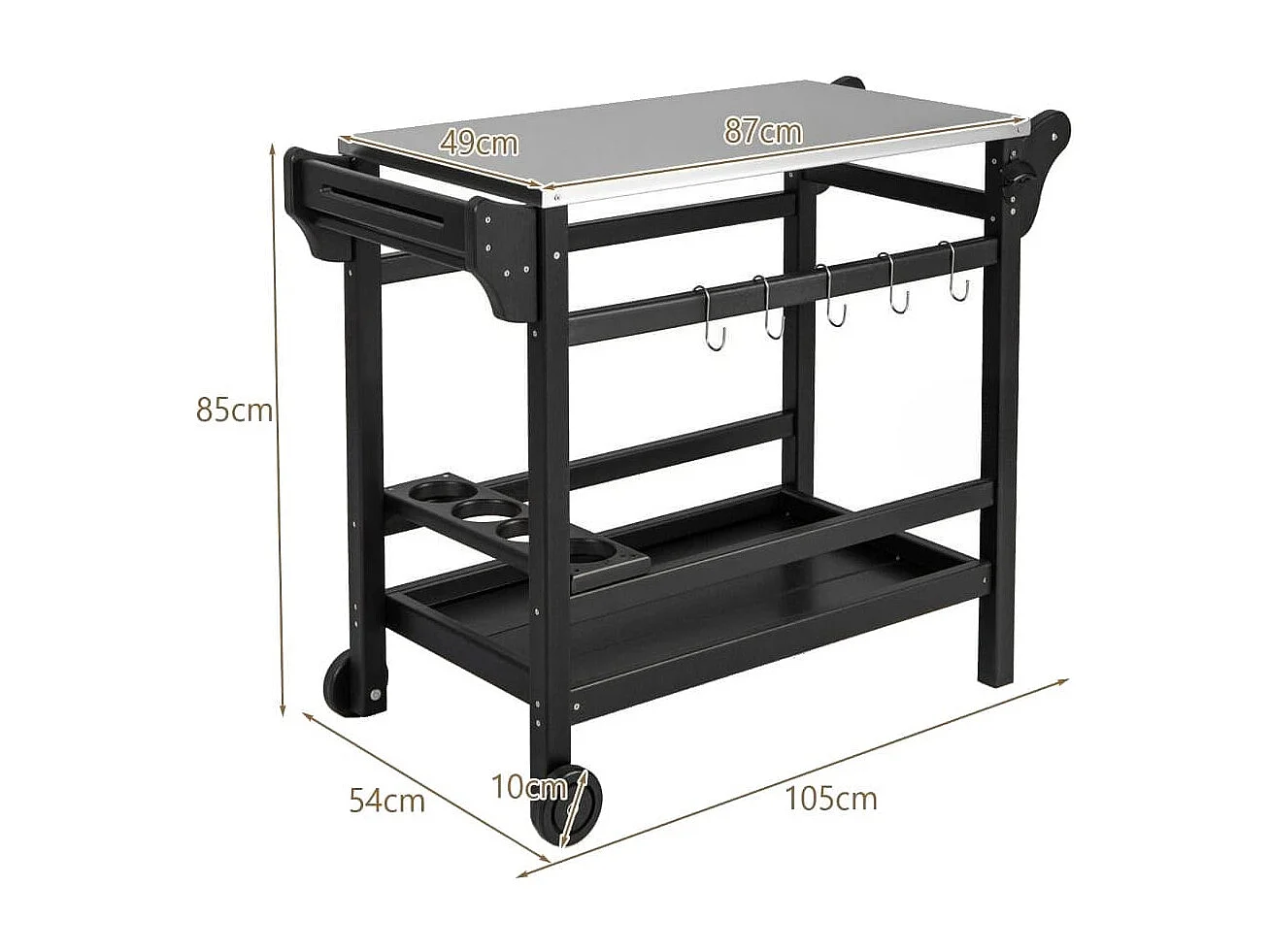 Grillwagen aus HDPE mit Gewürztablett & Weinflaschenregal & Griff & 2 Rollen Grilltisch
