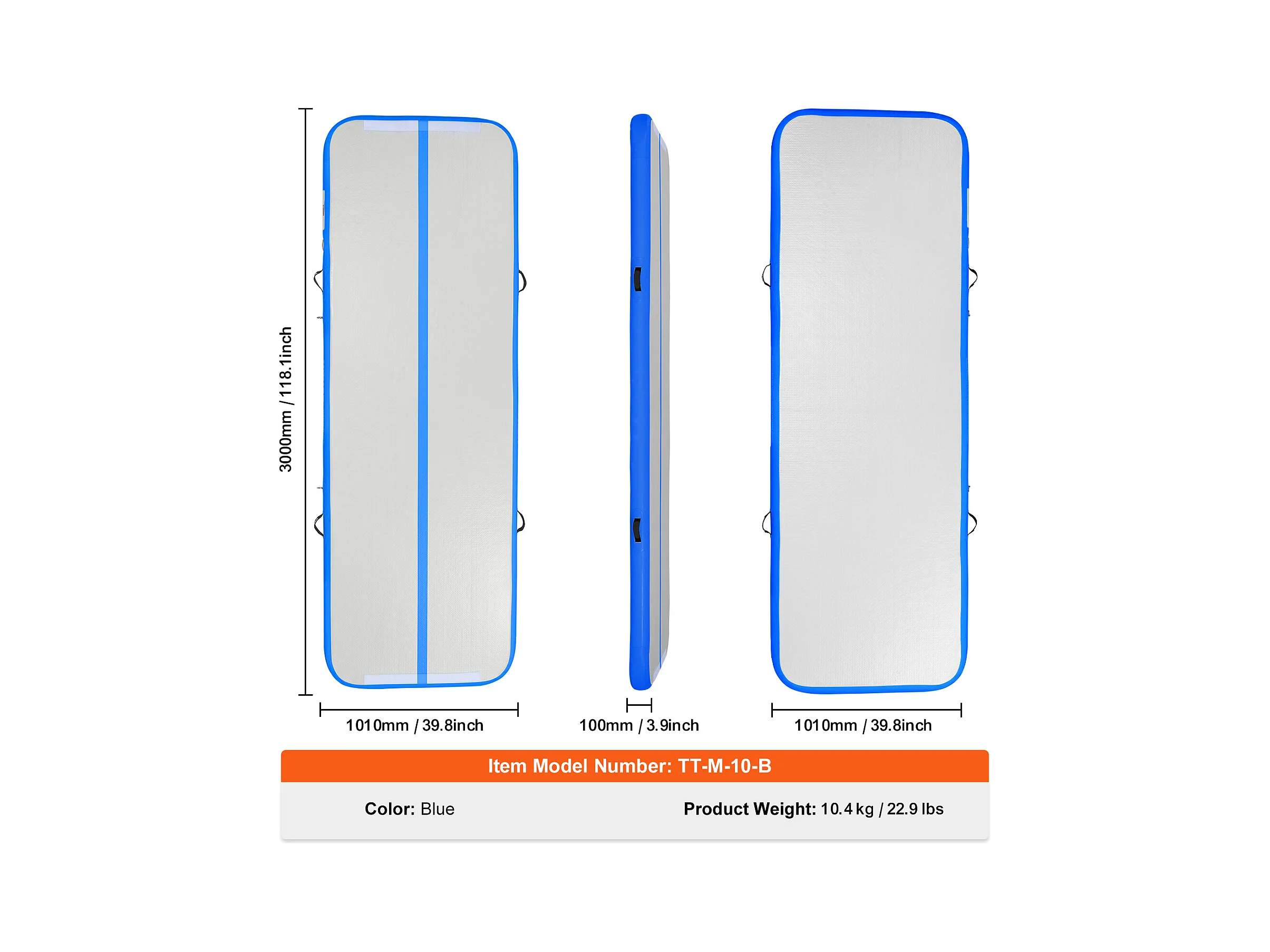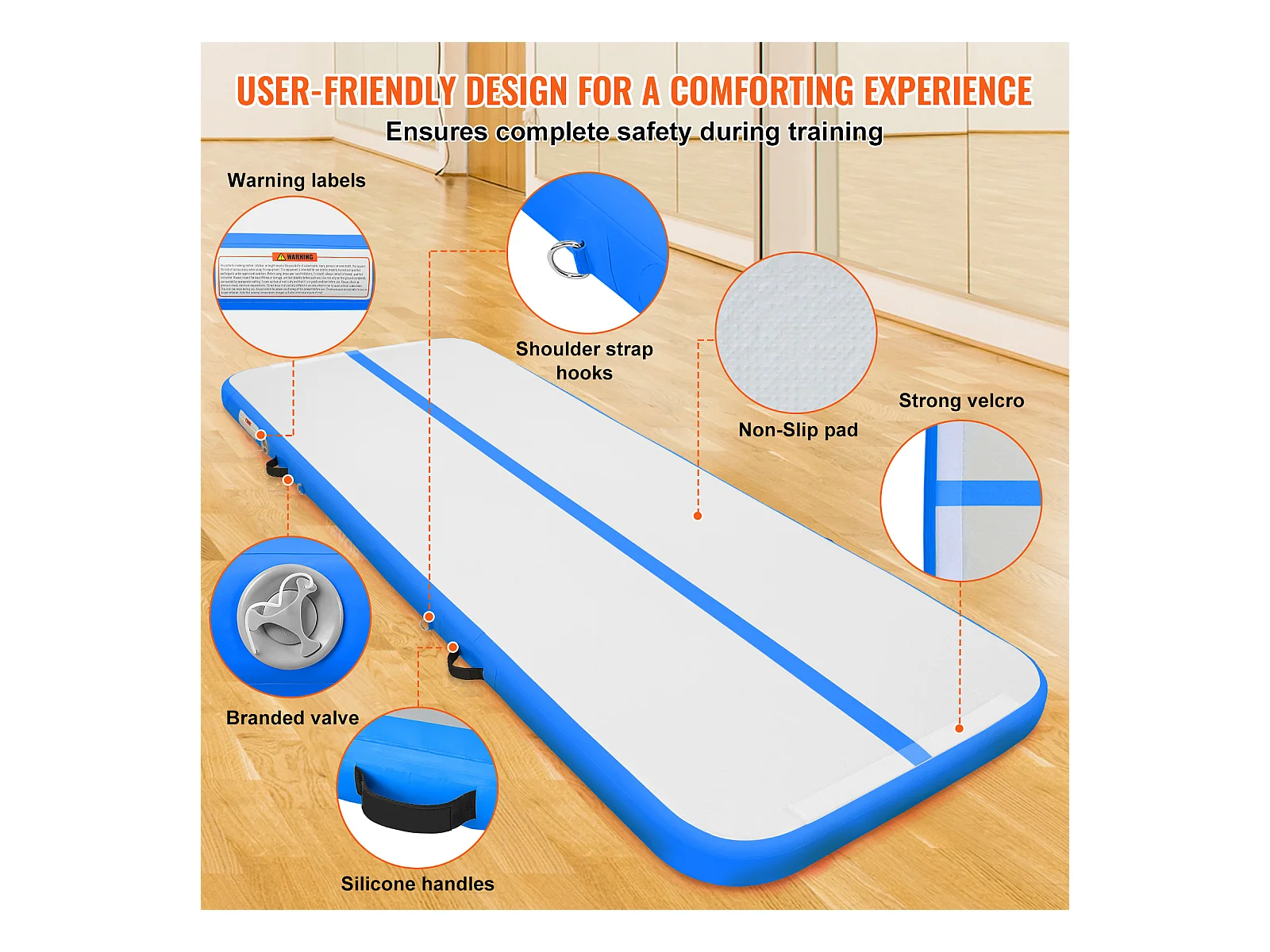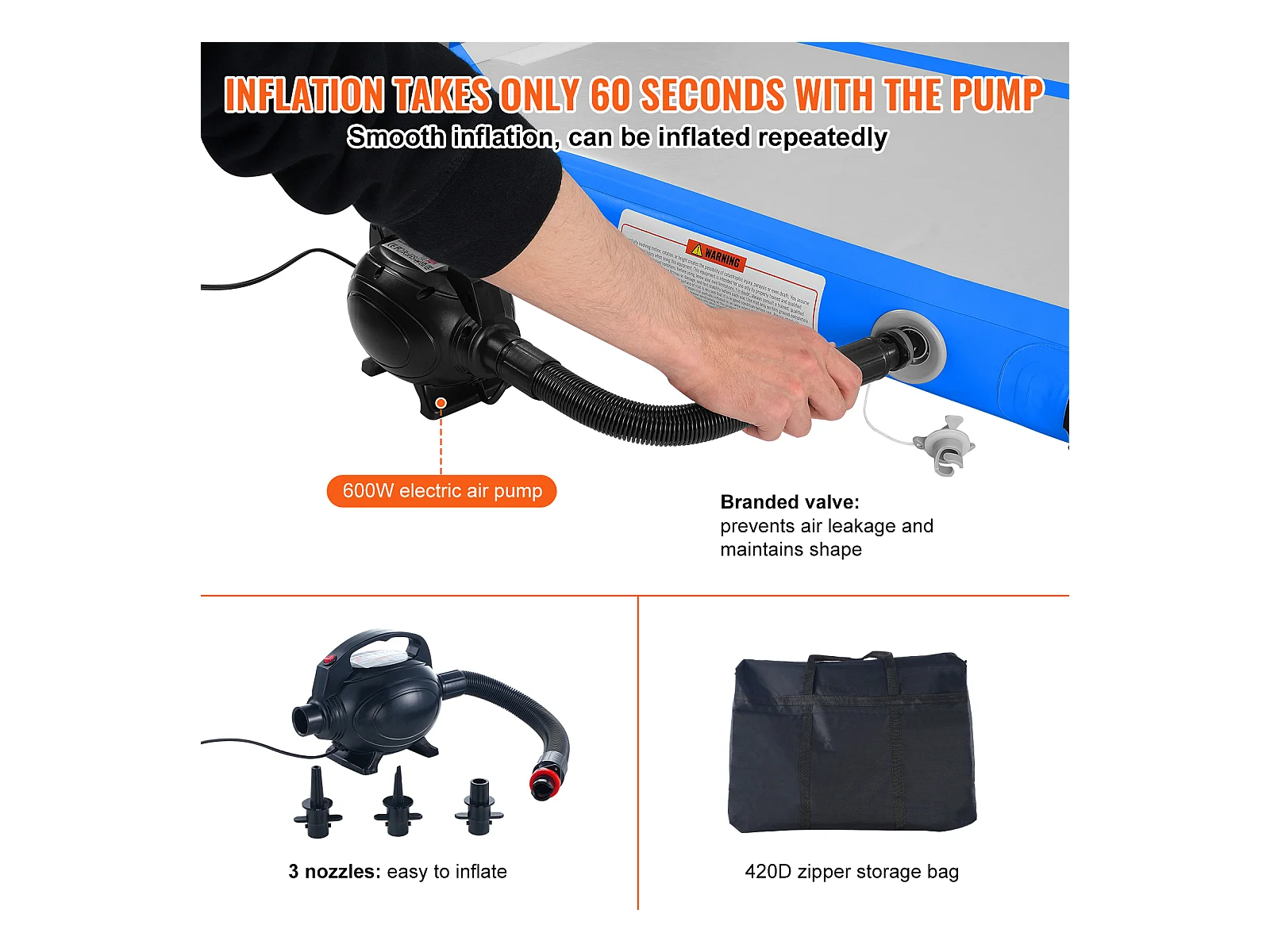 Gymnastikmatte, 10 cm dicke aufblasbare Tumblingmatte von SucceBuy. 305 cm, mit elektrischer Pumpe. Ideal für Fitnessstudio, Yoga
