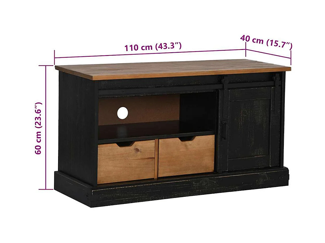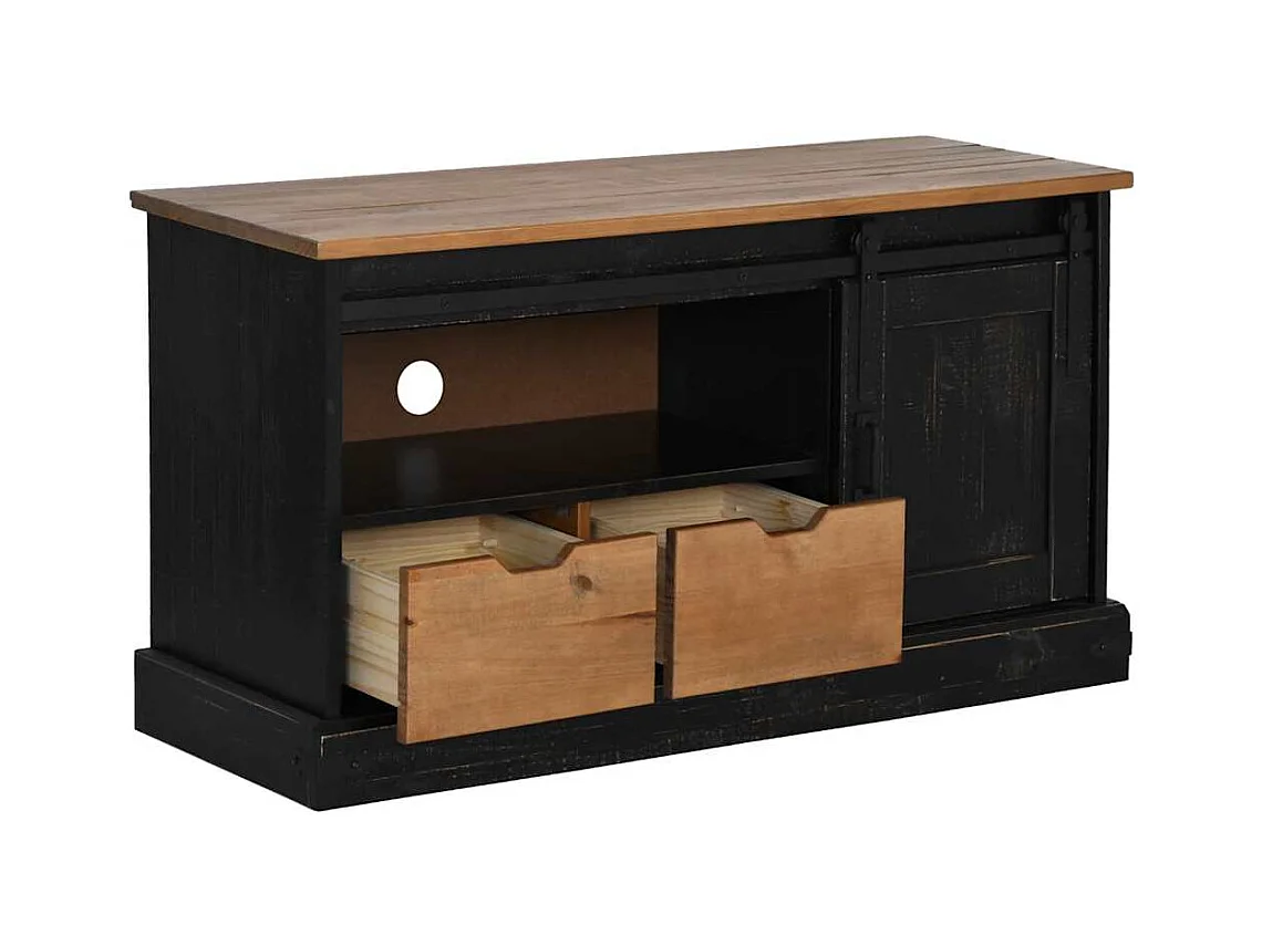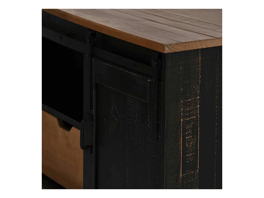 HALDEN TV-Schrank mit Schiebetür, schwarz, 110x40x60cm, Massivholz