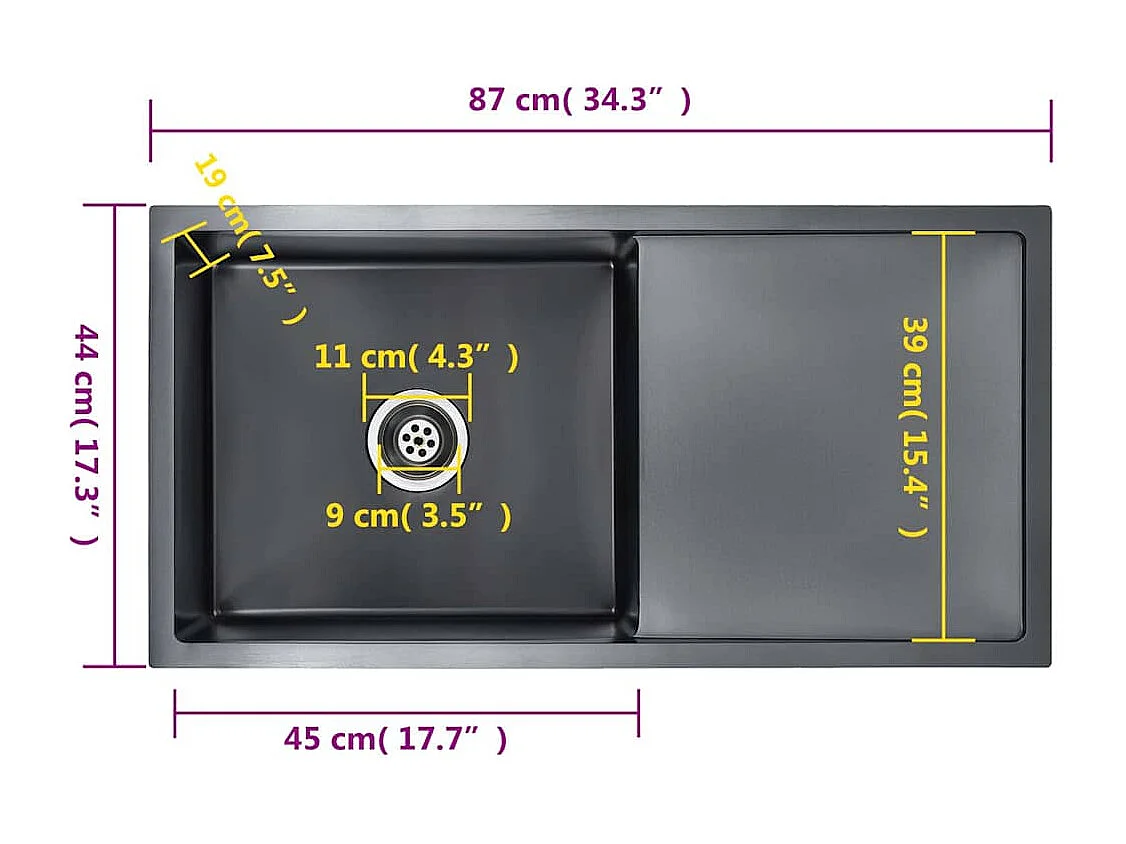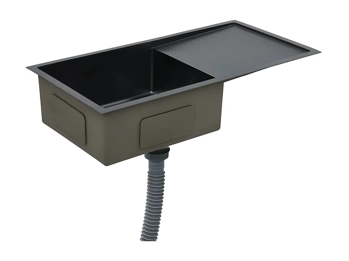 Handgefertigte Küchenspüle aus schwarzem Edelstahl