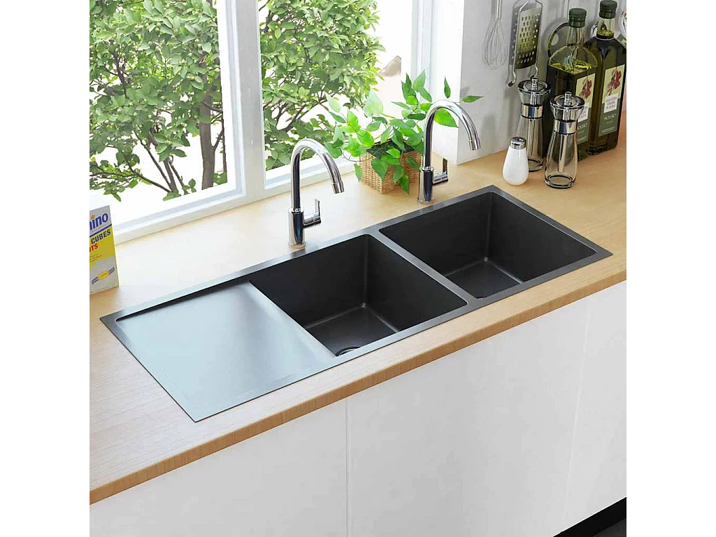 Handgefertigte Küchenspüle aus schwarzem Edelstahl