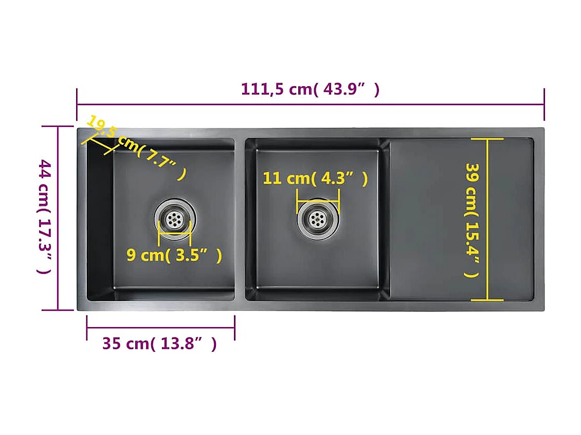 Unterbauspüle aus schwarzem Granit mit Doppelbecken