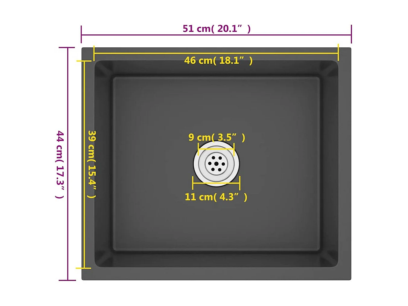 Schwarze Küchenspüle 38 x 44 x 20 cm Granit