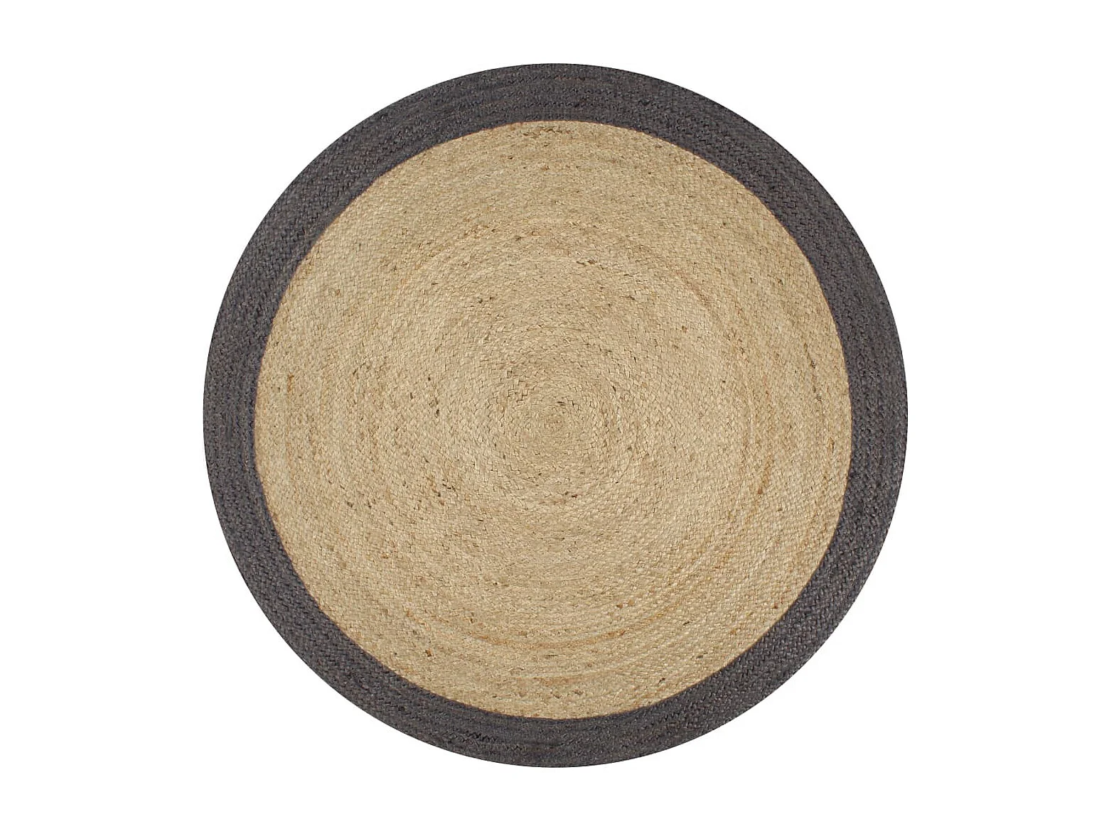 Handgefertigter Juteteppich mit dunkelgrauem Rand, 150 cm