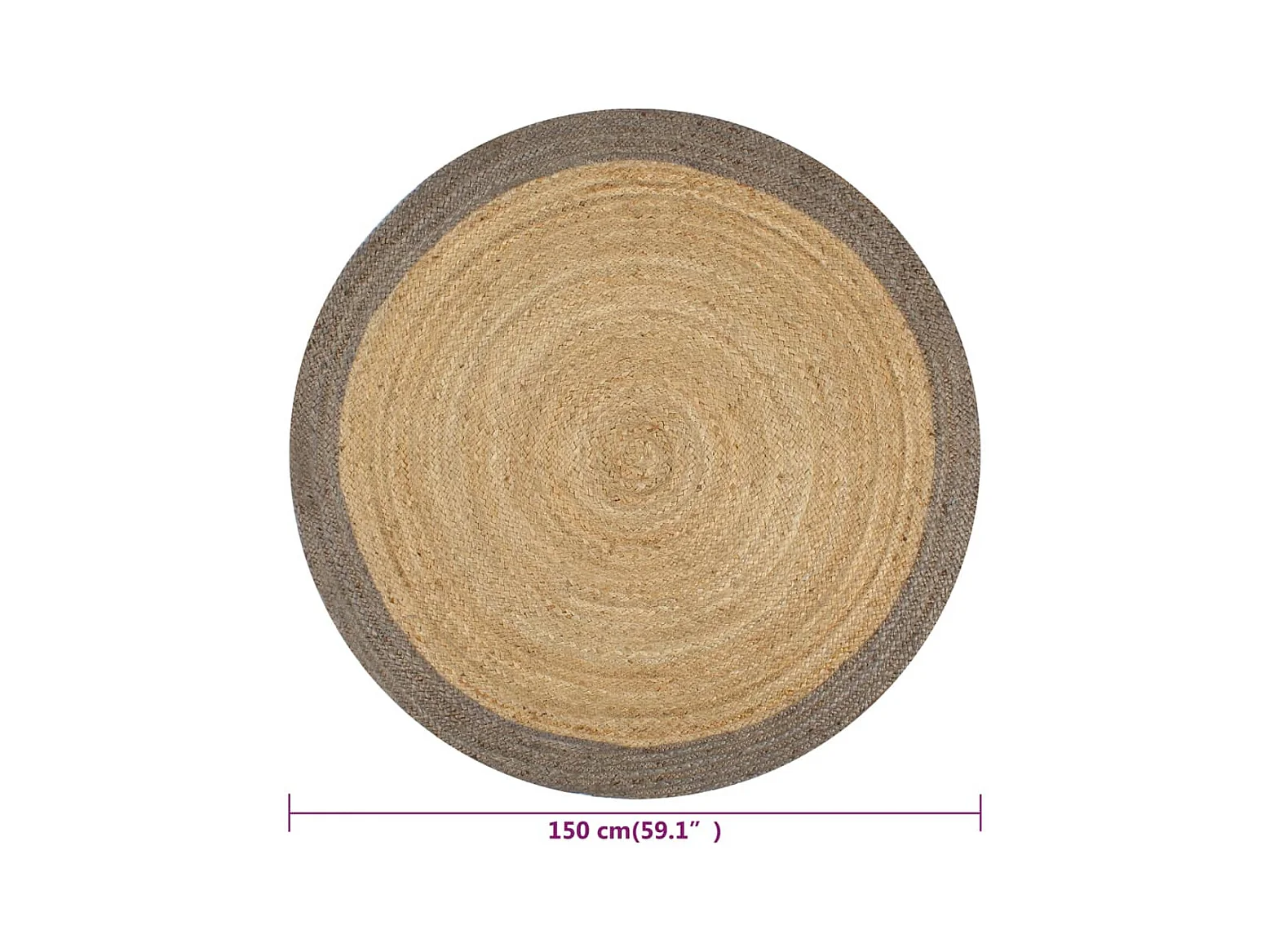 Handgefertigter Juteteppich mit grauem Rand, 150 cm
