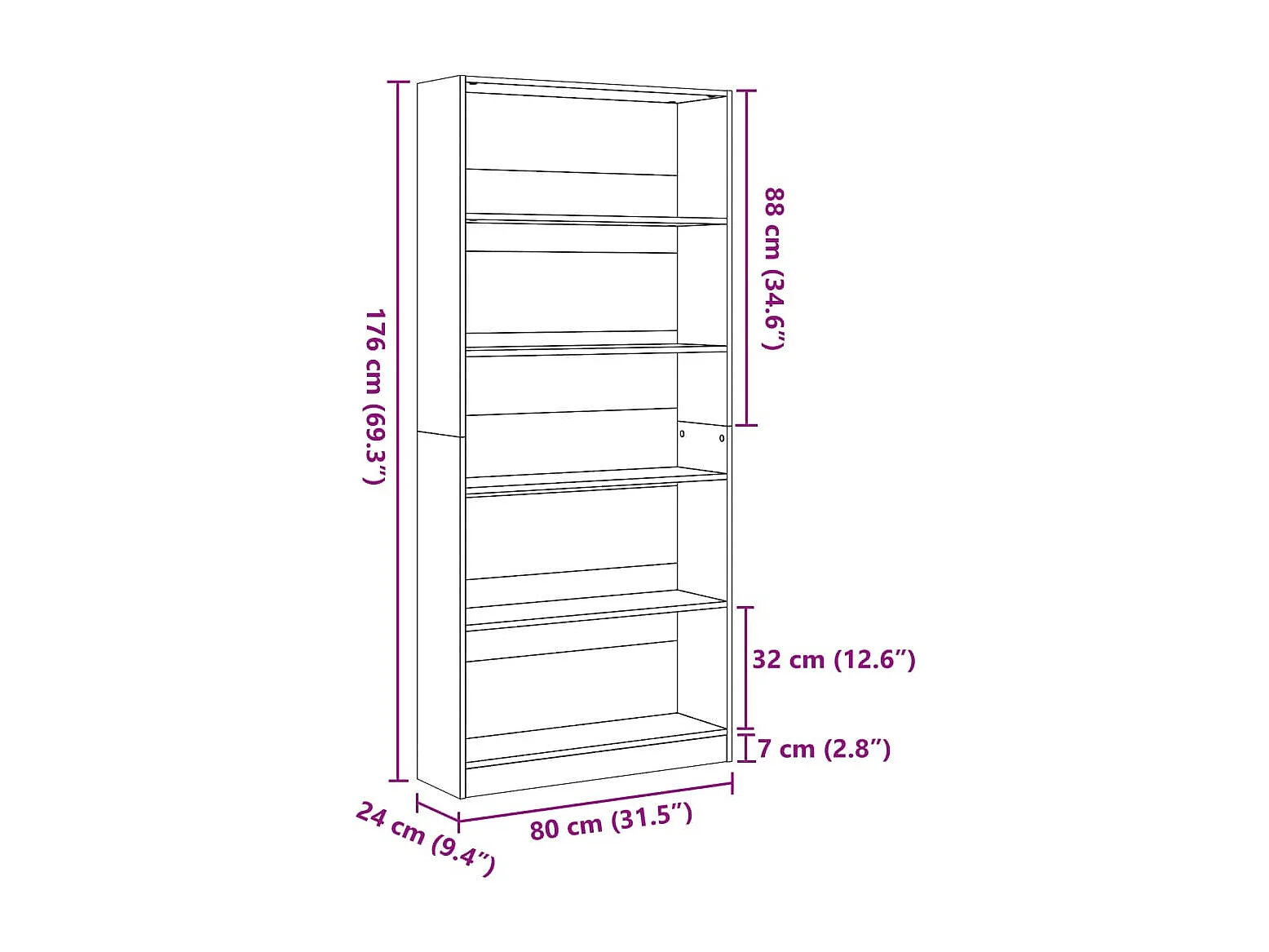 Bücherregal aus brauner Eiche, 80 x 24 x 176 cm, Holzwerkstoff
