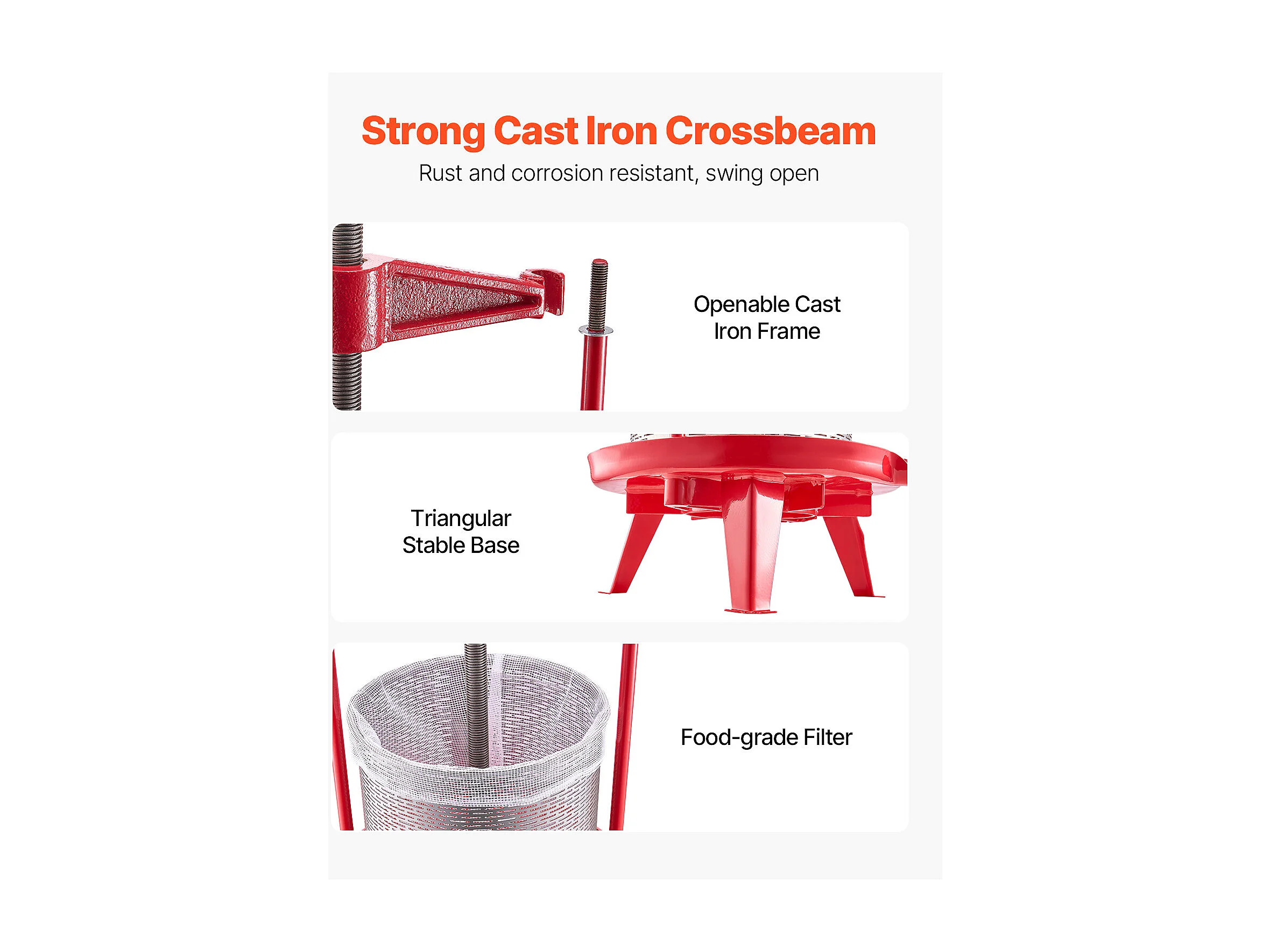 Handpresse für Früchte und Wein SucceBuy , Edelstahl 14L, für die Hausbrauerei, mit Querbalken und Stabiler Dreieckskonstruktion