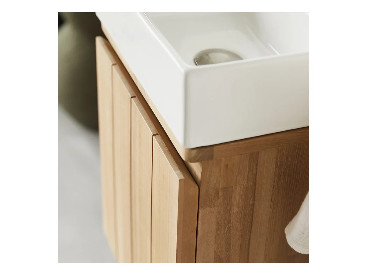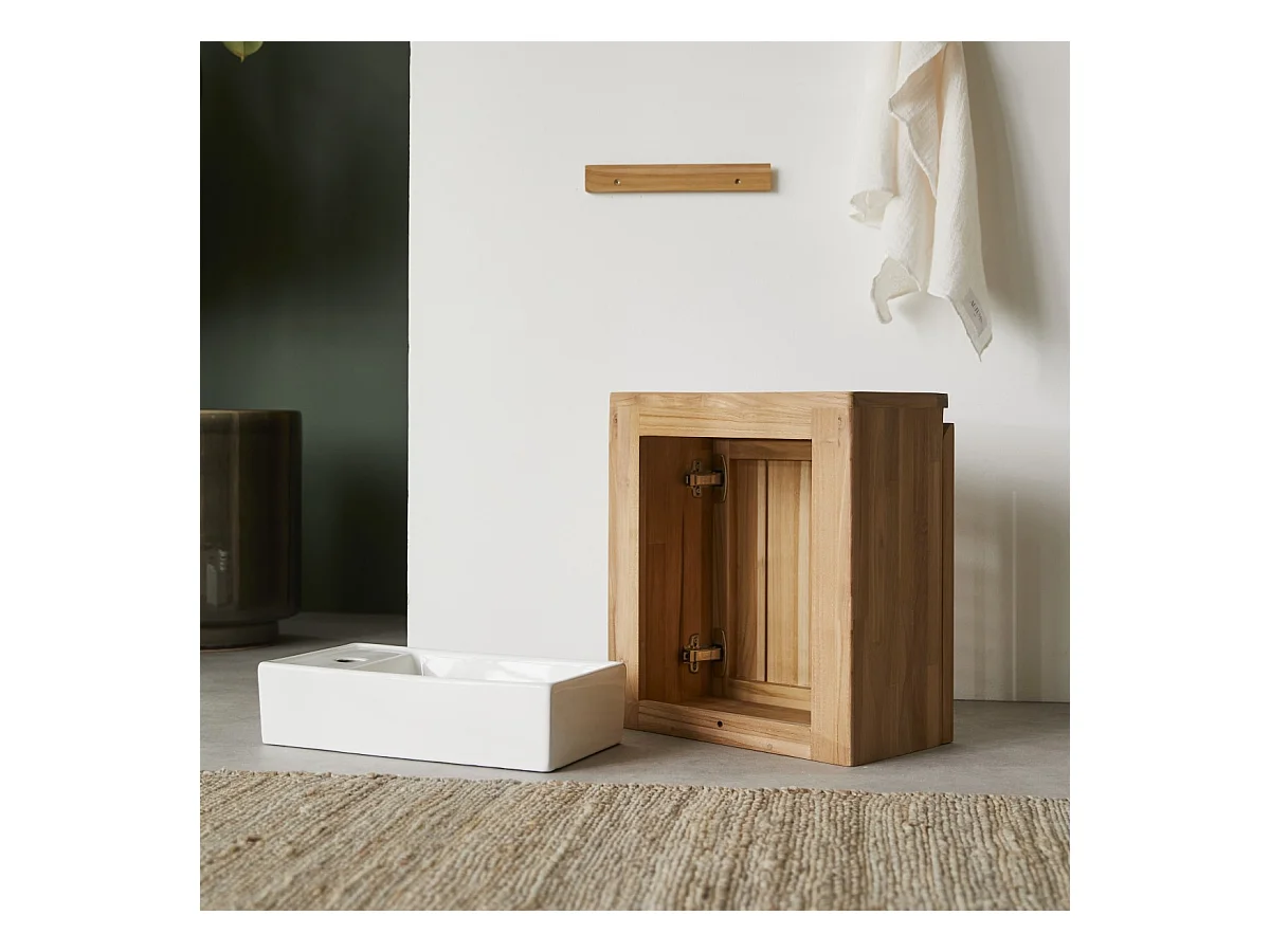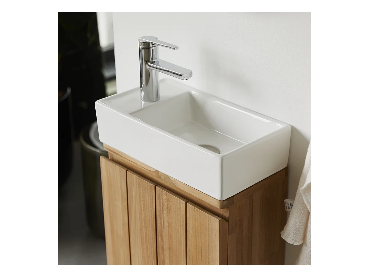 Handwaschbecken-Unterschrank Jill aus Teakholz und Keramik, 40 cm