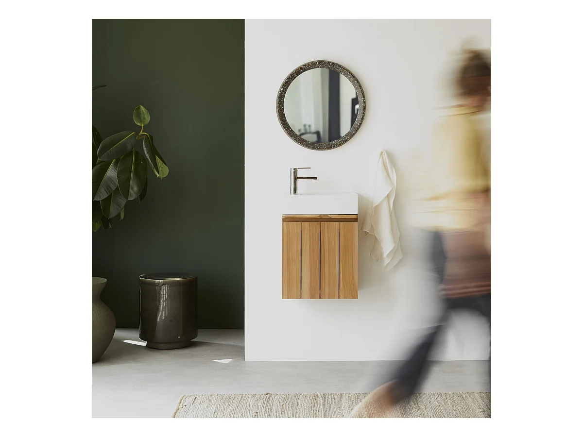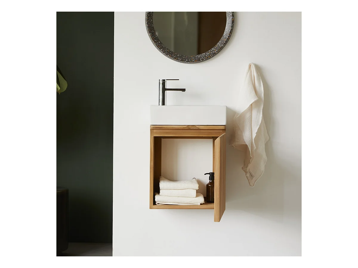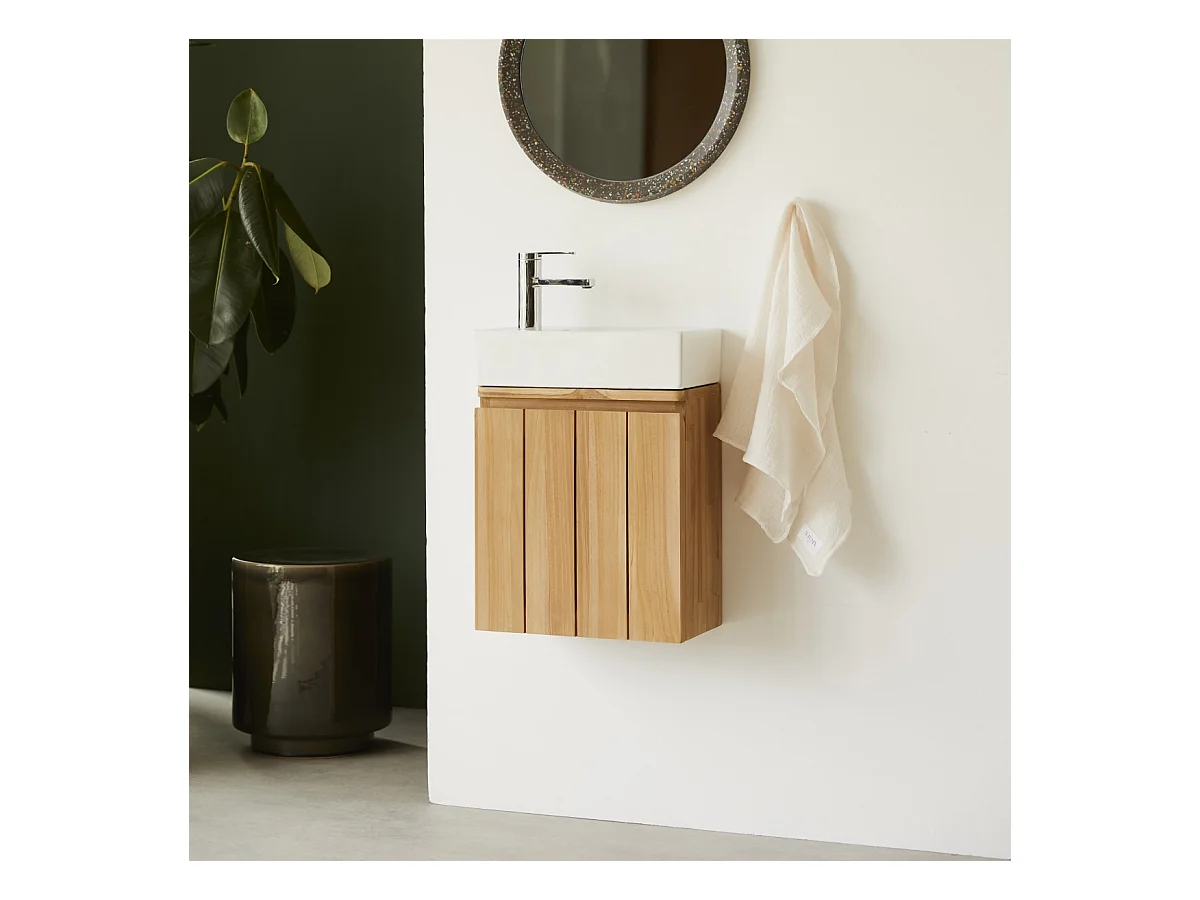 Handwaschbecken-Unterschrank Jill aus Teakholz und Keramik, 40 cm
