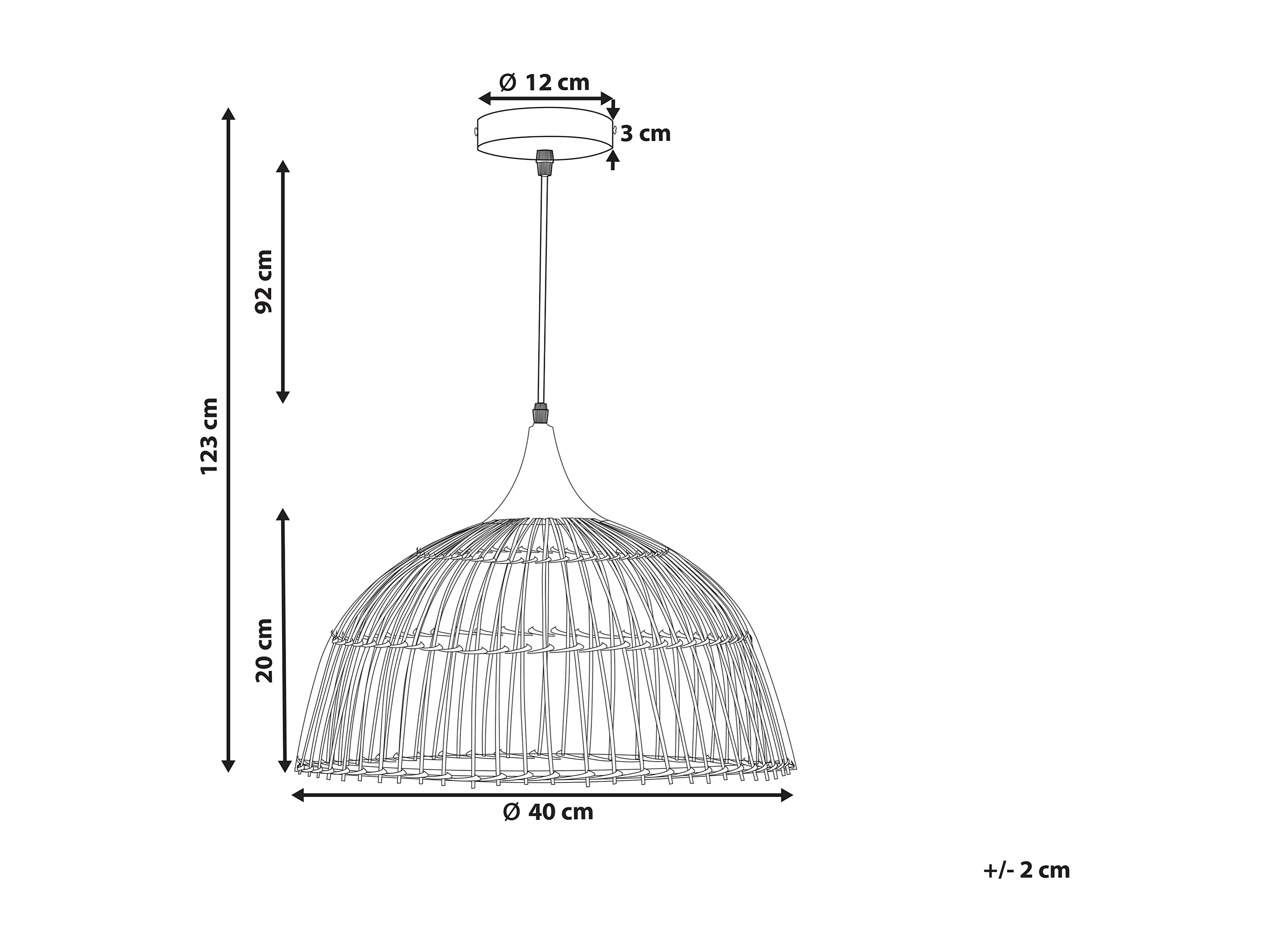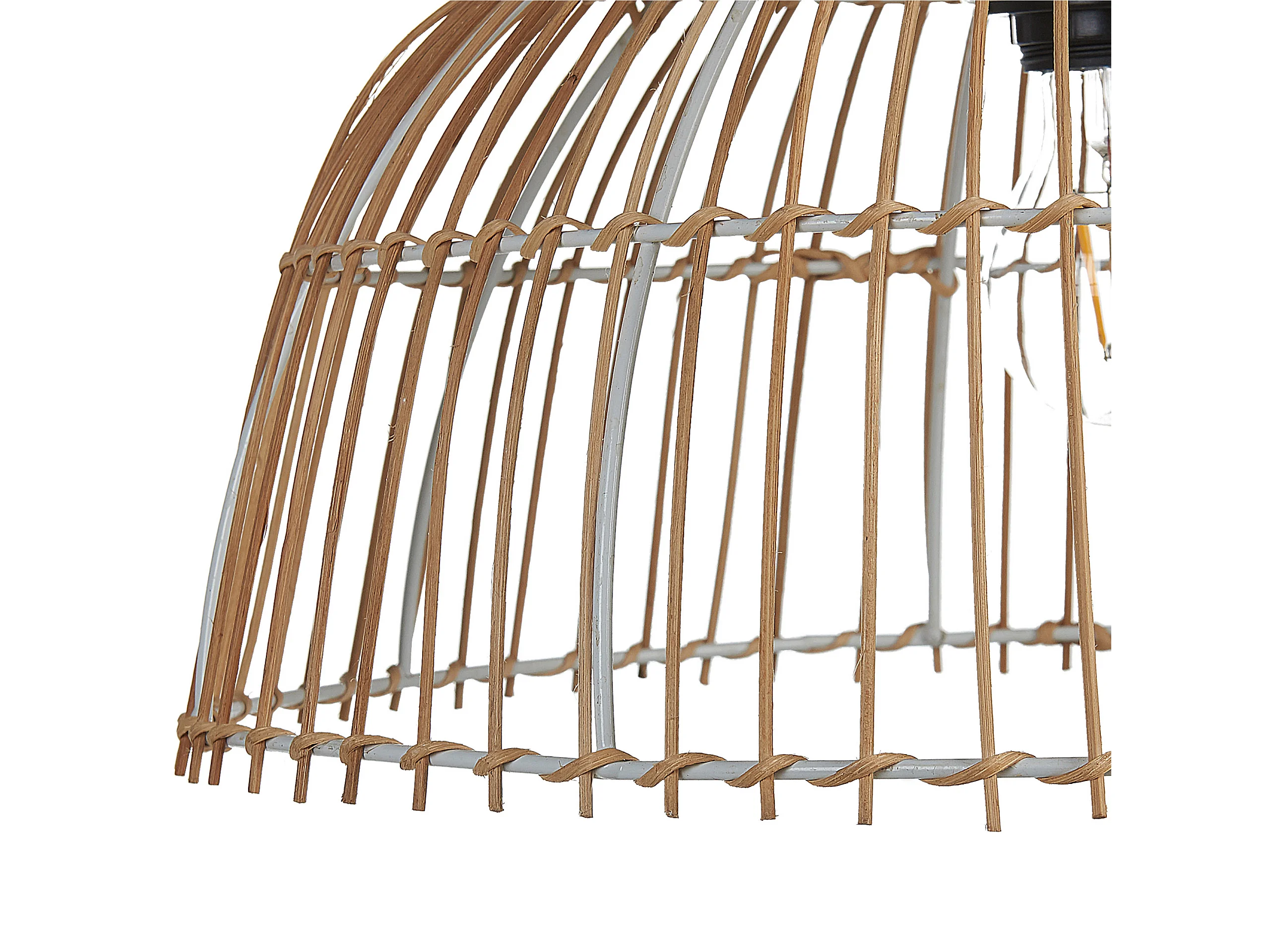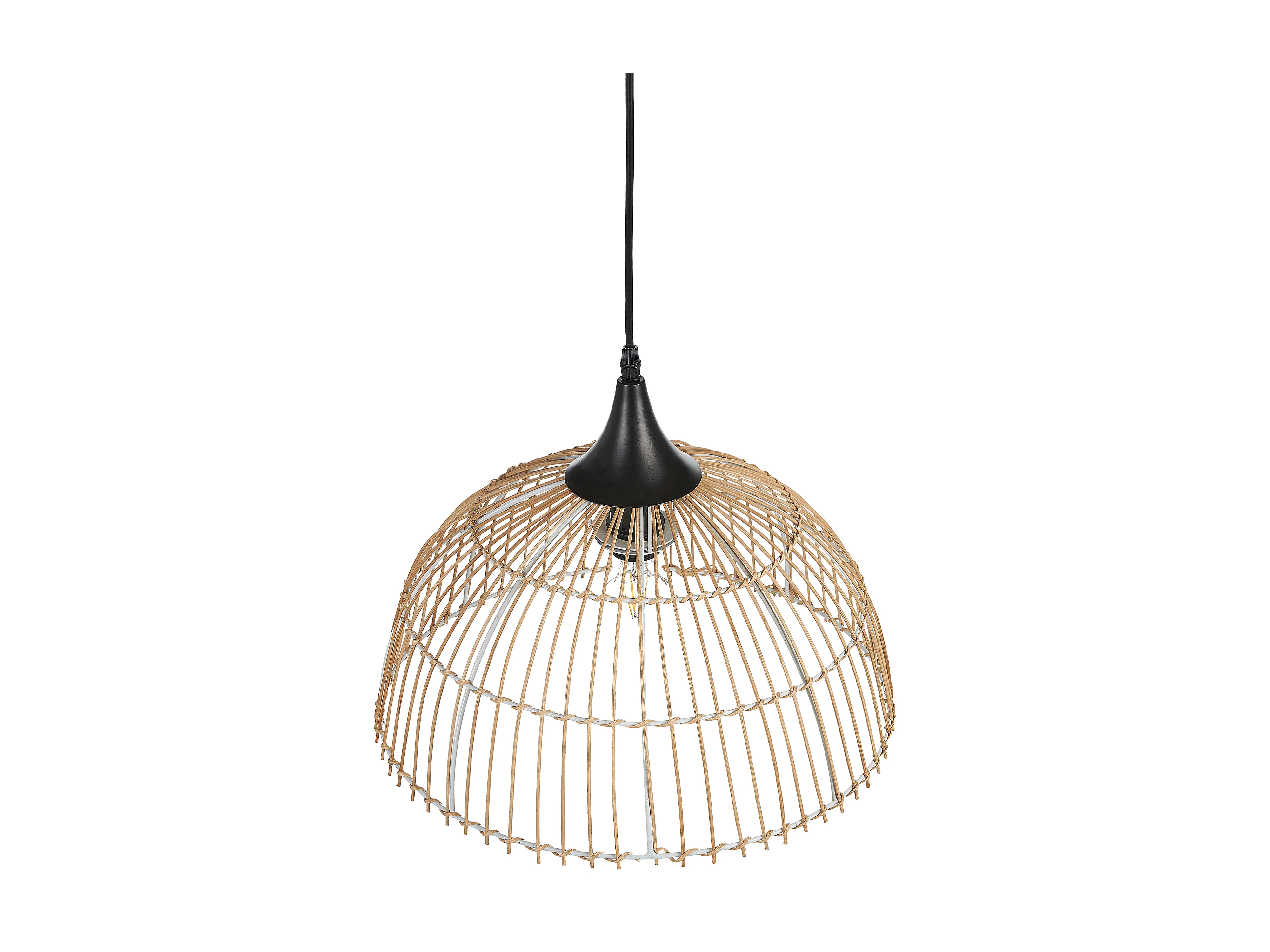 Hängelampe mit rundem Schirm Rattan natürlich beige geflochten Boho Bararis
