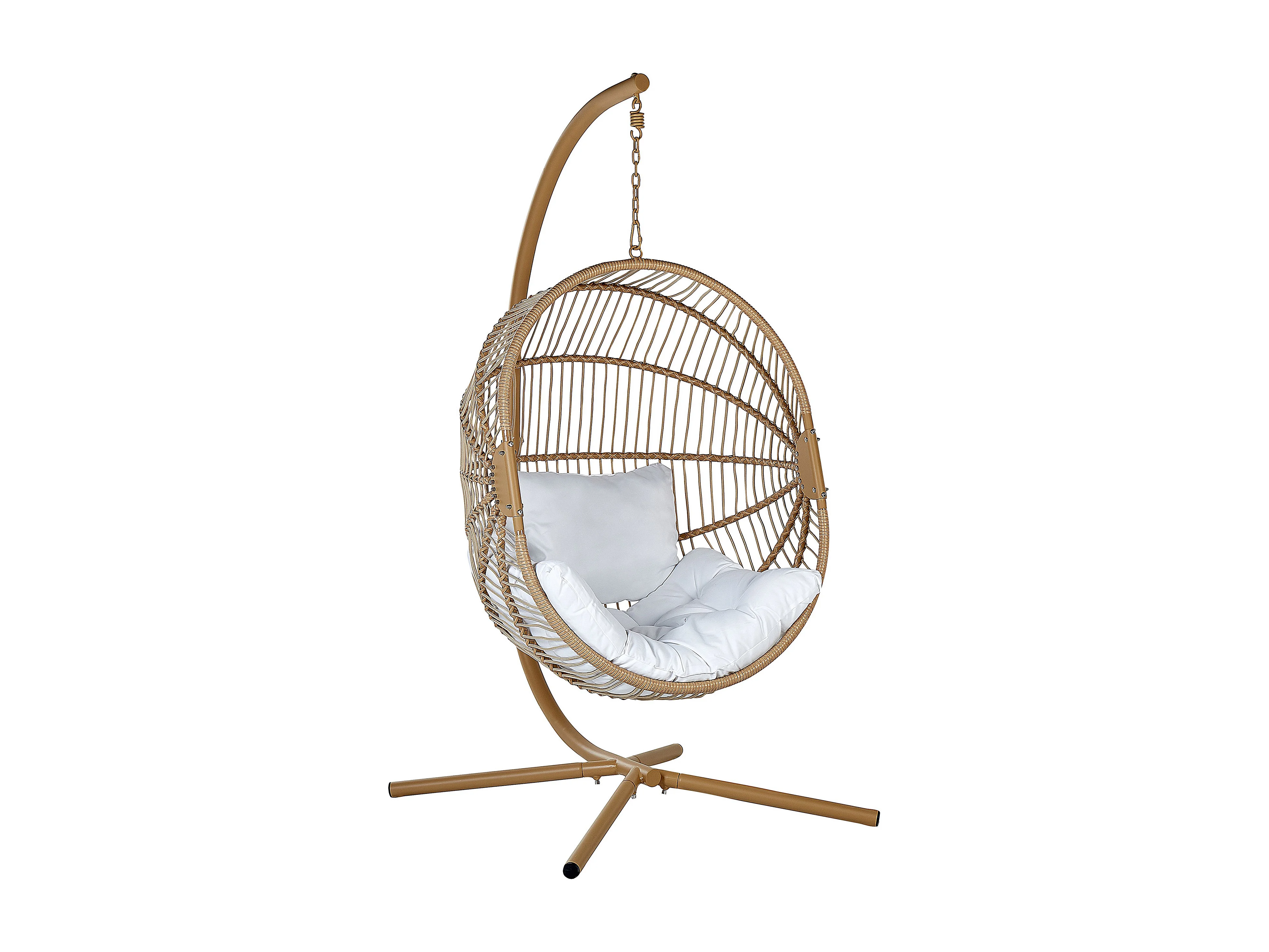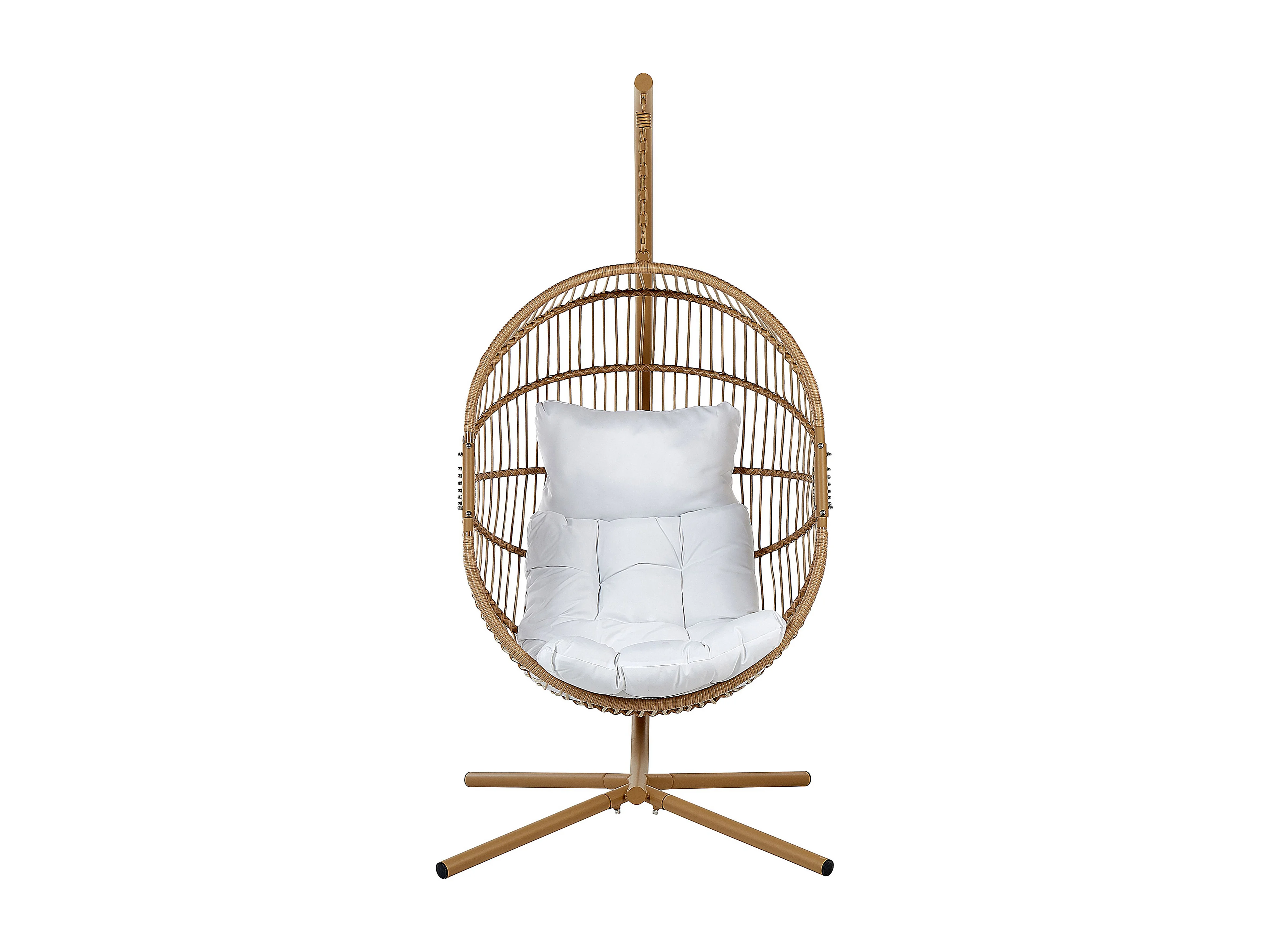 Eiförmiger Hängesessel mit beigem Rattan- und Stahlgestell