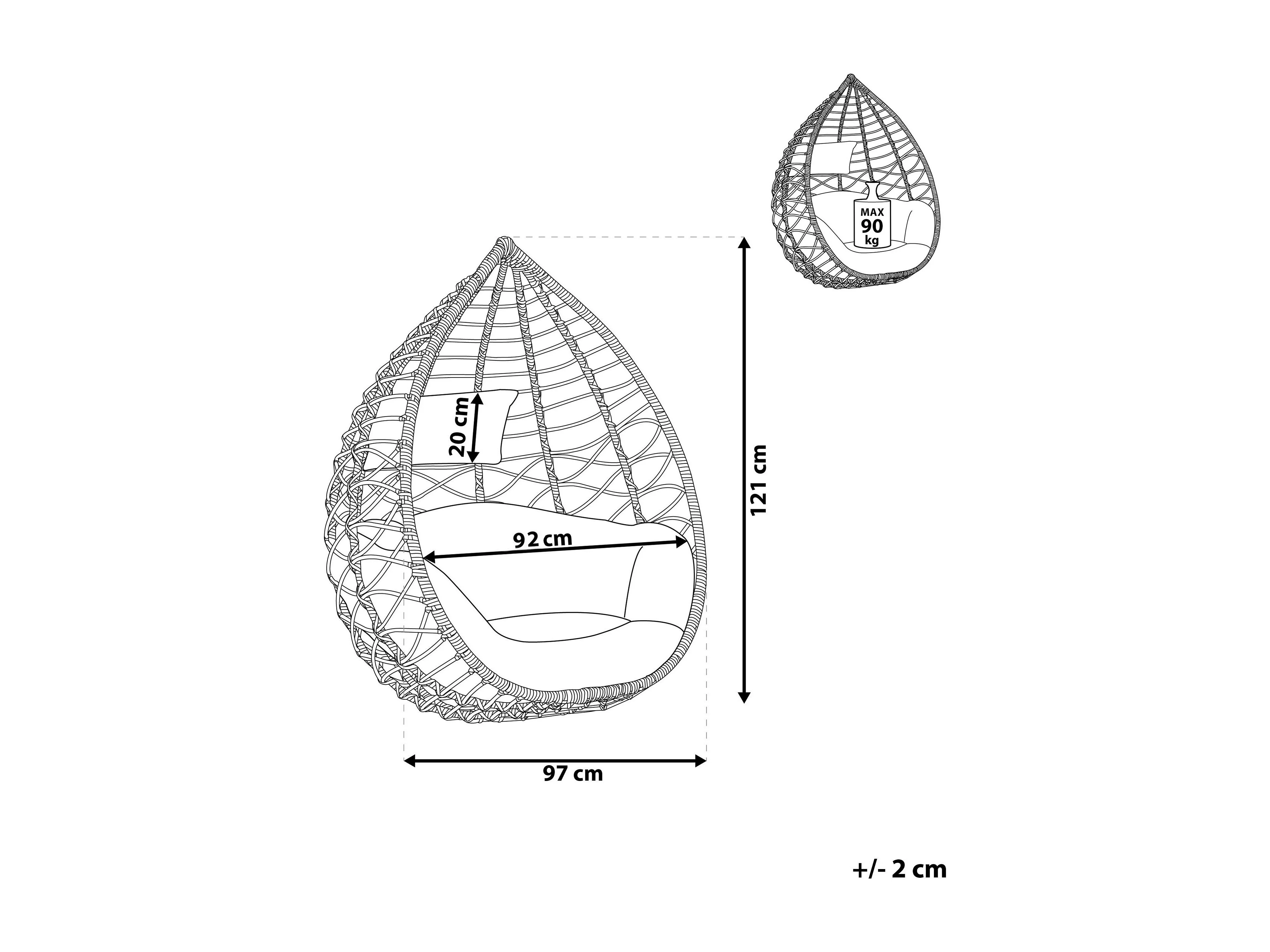 Moderner Hängekorbsessel Rattan ohne Gestell inkl. Kissen Beige Casoli