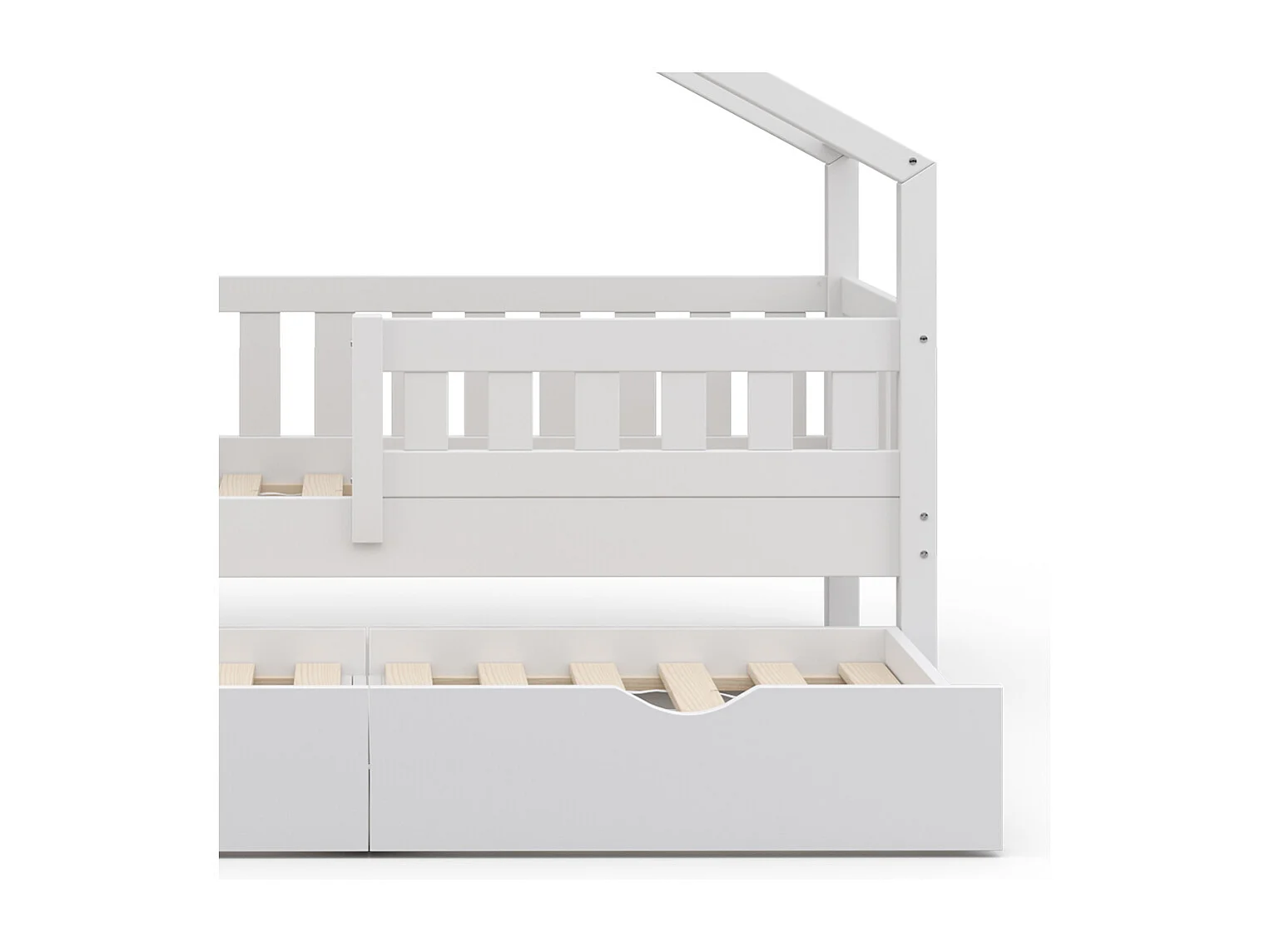 Kinderbettgestell mit weißen Schubladen 80x160cm aus massivem Kiefernholz