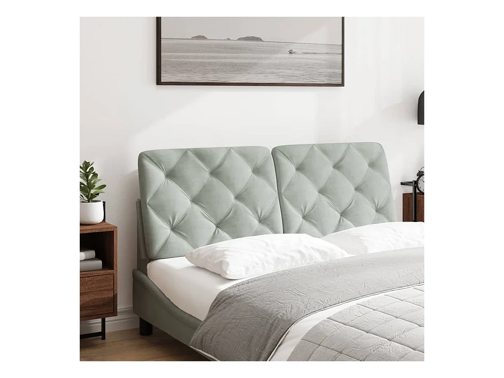 Hellgraues Samt-Kopfteilkissen 90 cm