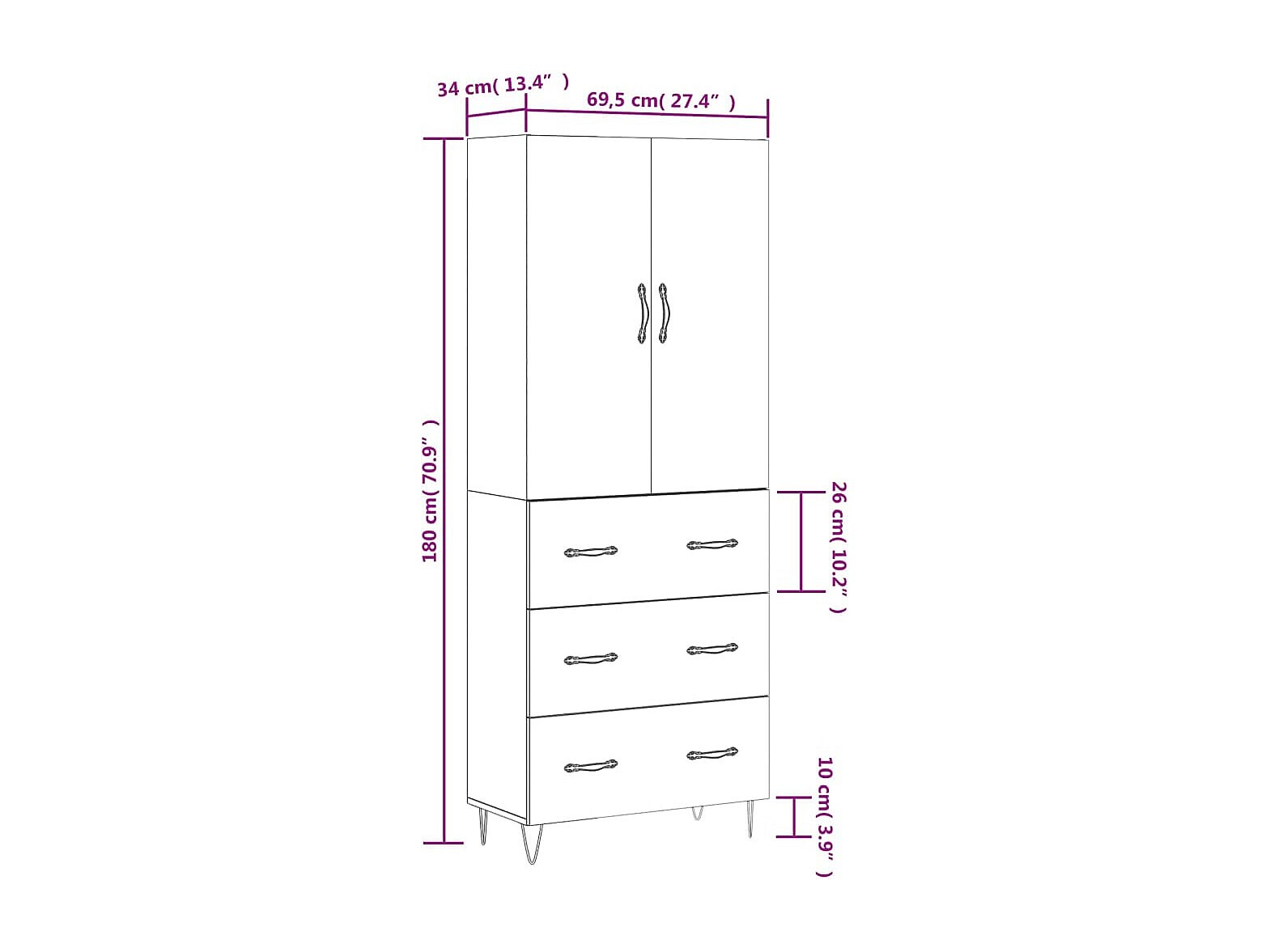 Highboard Grau Sonoma 69,5x34x180 cm Holzwerkstoff