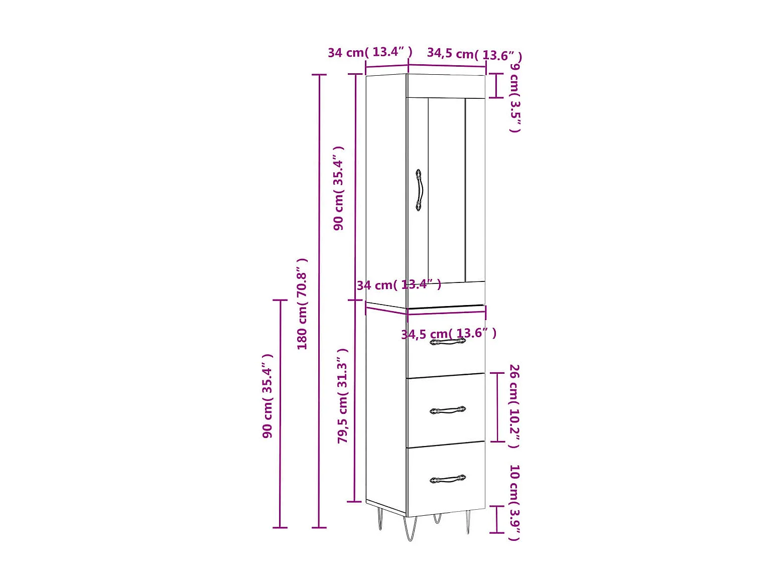 Highboard Hochglanz-Weiß 34,5x34x180 cm Holzwerkstoff