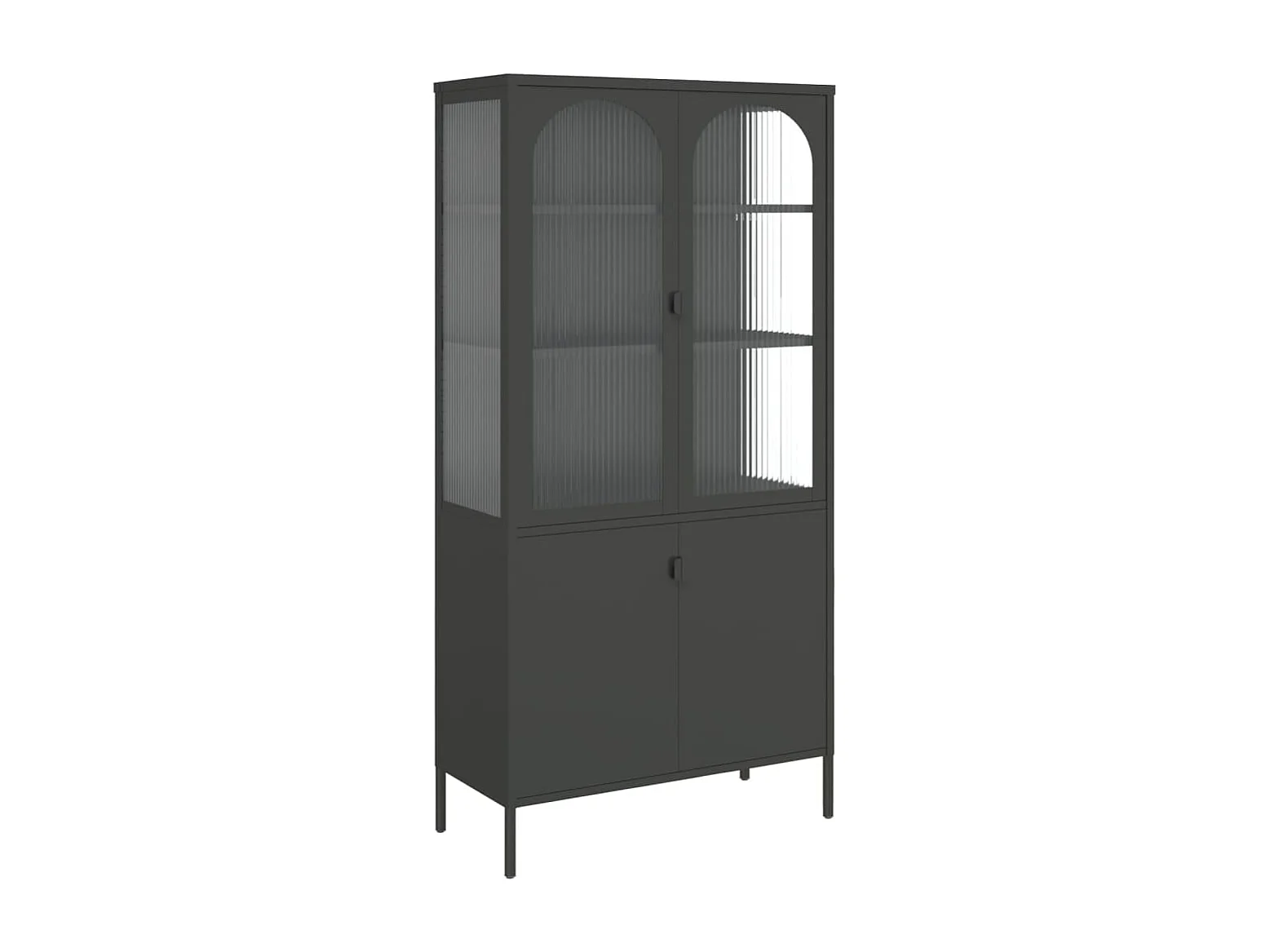 Highboard Schwarz 90x40x180 cm Glas und Stahl
