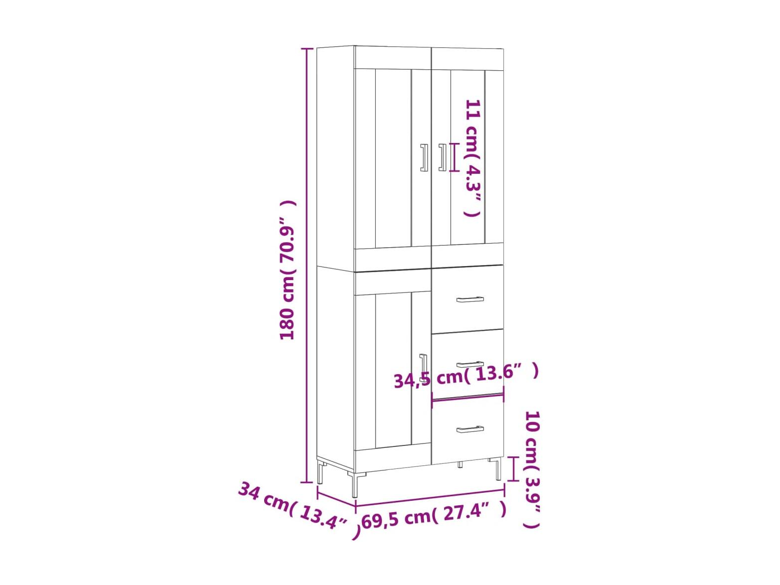 Highboard Weiß 69,5x34x180 cm Holzwerkstoff
