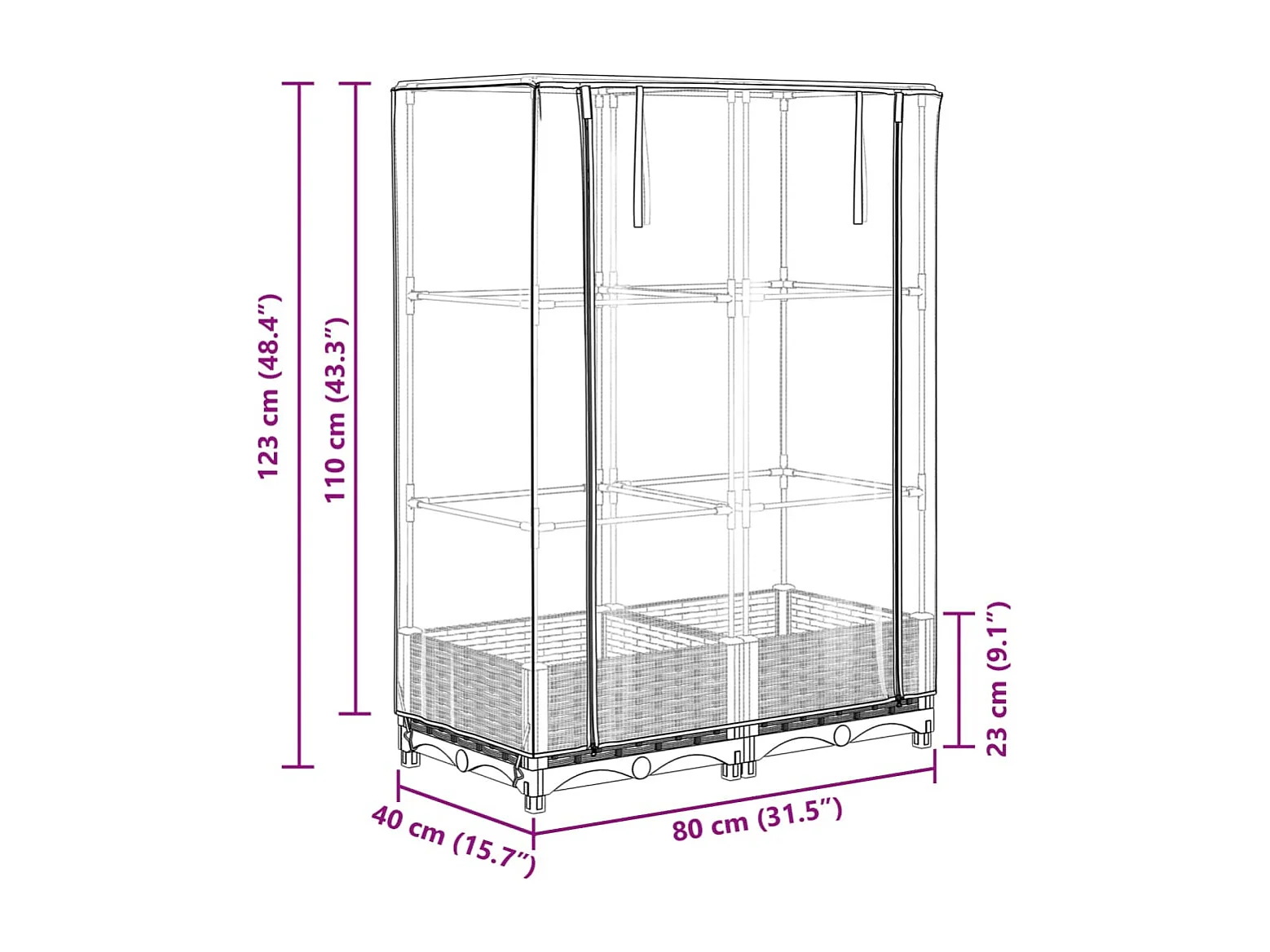 Hochbeet mit Gewächshaus-Aufsatz Rattan-Optik 80x40x123 cm