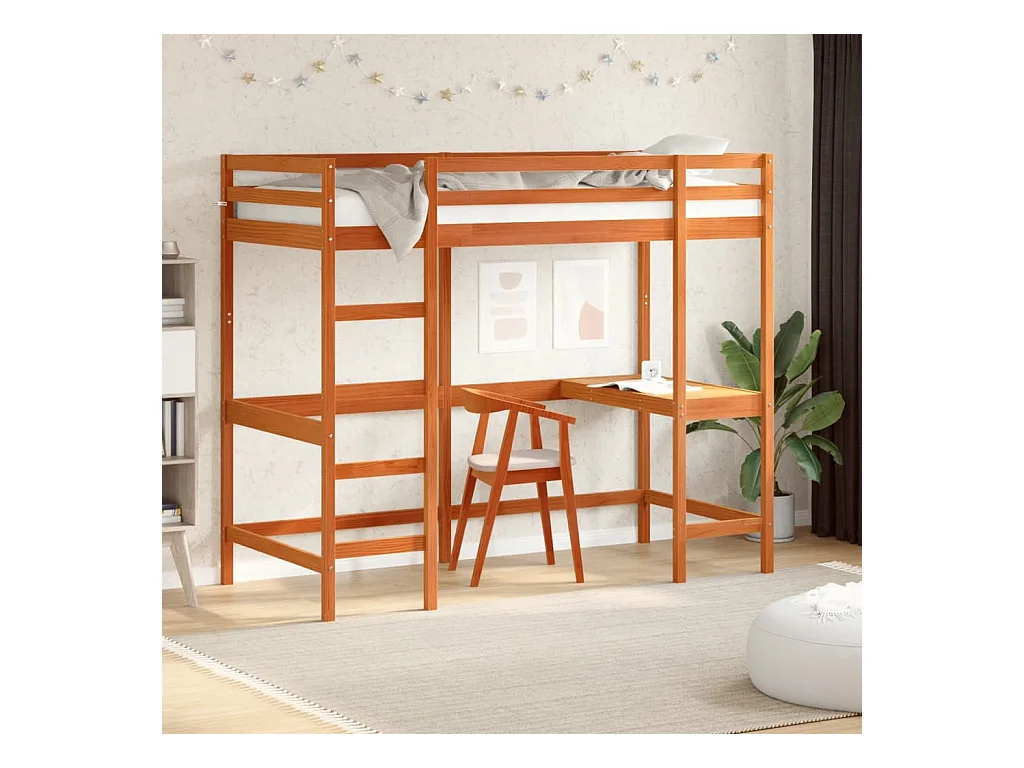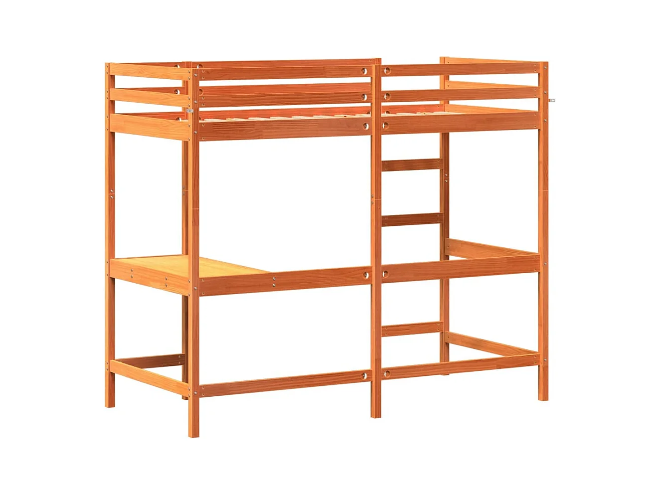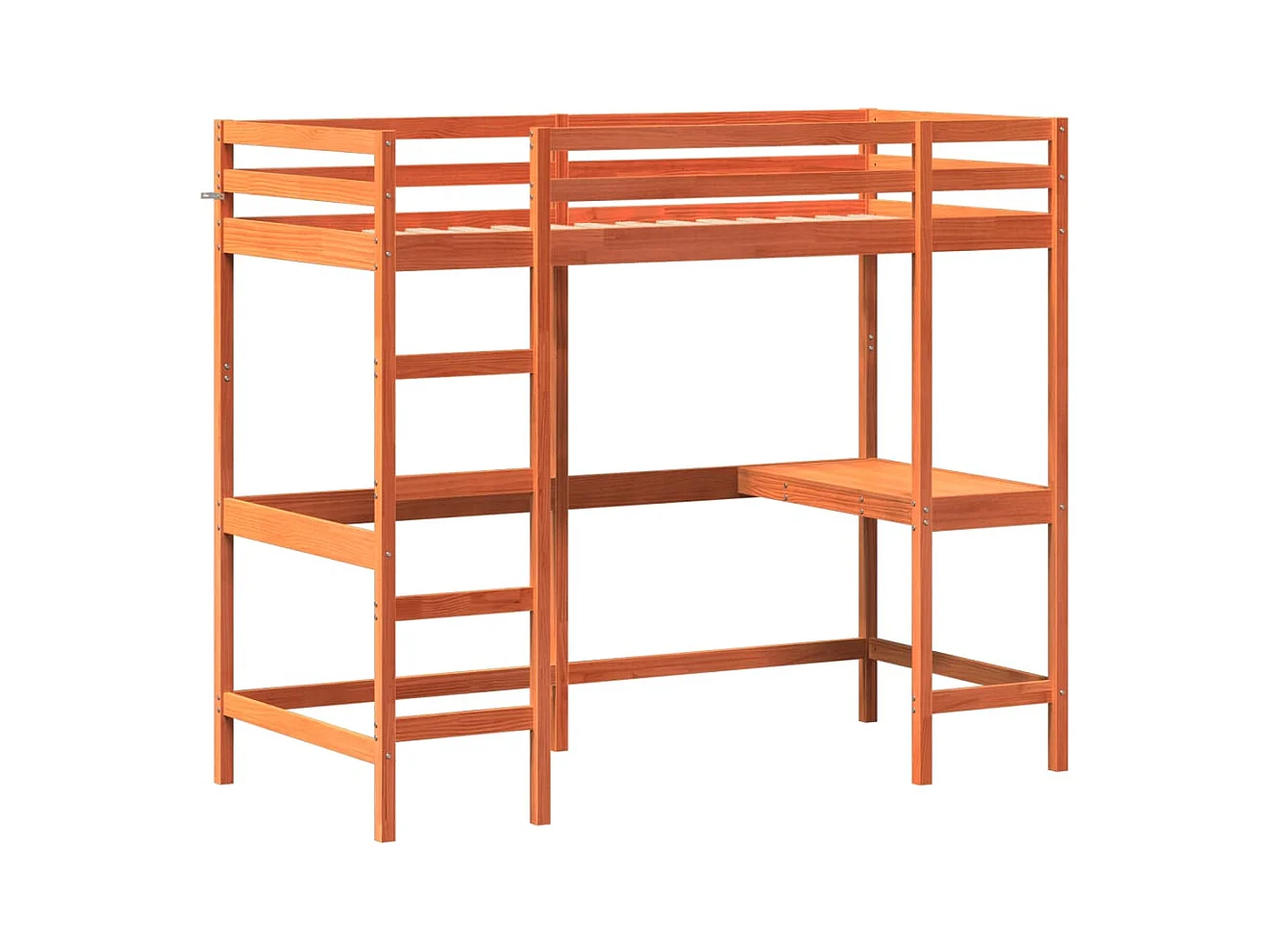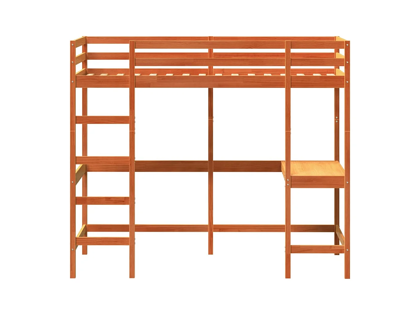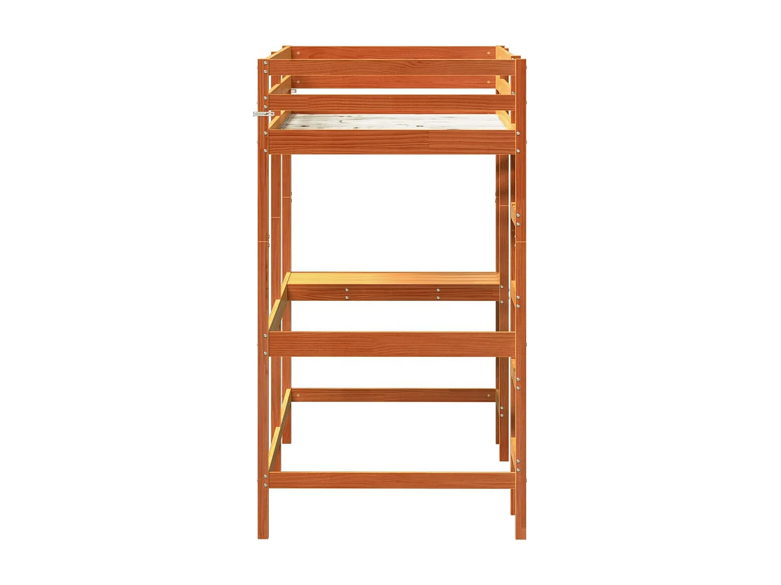 Hochbett mit Schreibtisch Wachsbraun 100x200 cm Massivholz