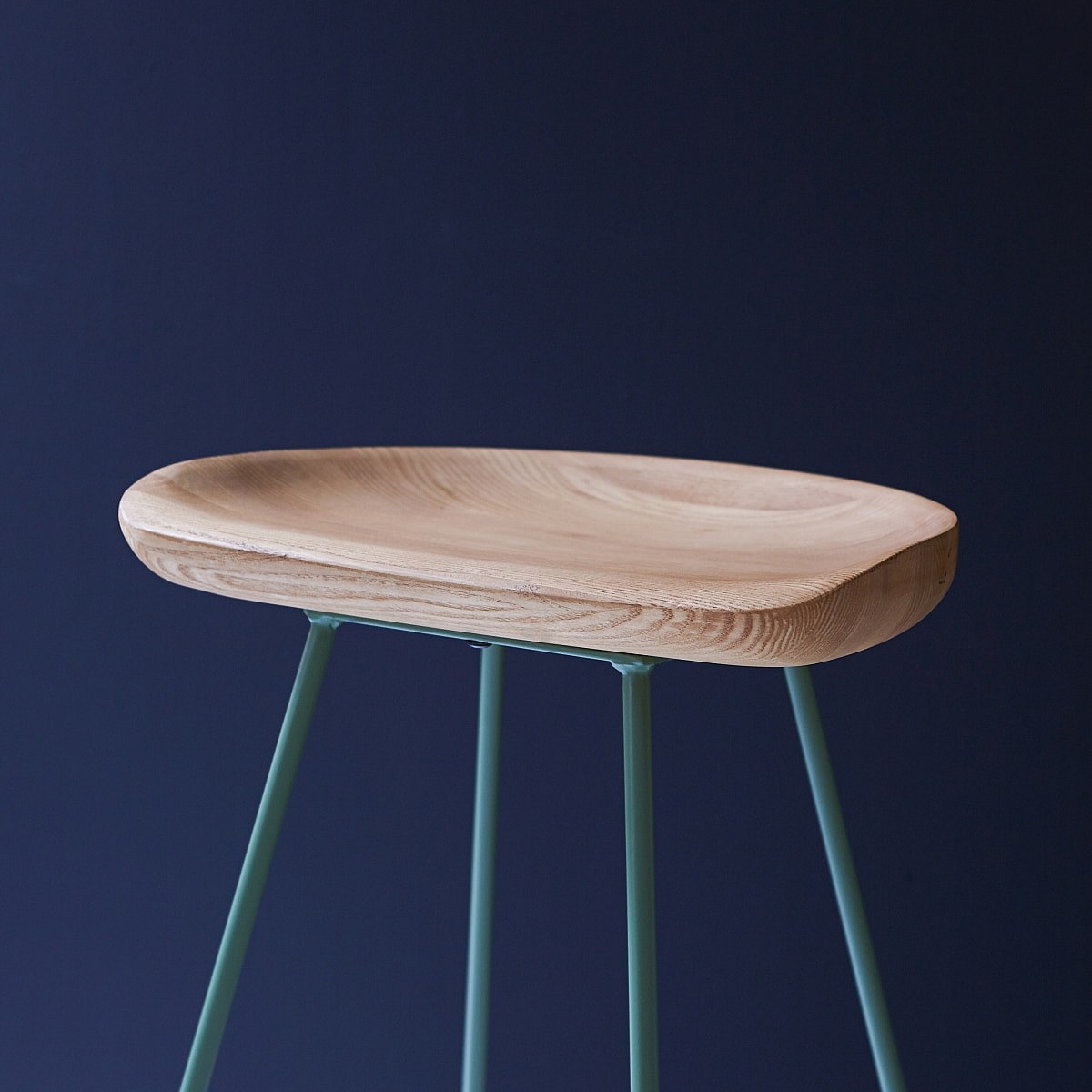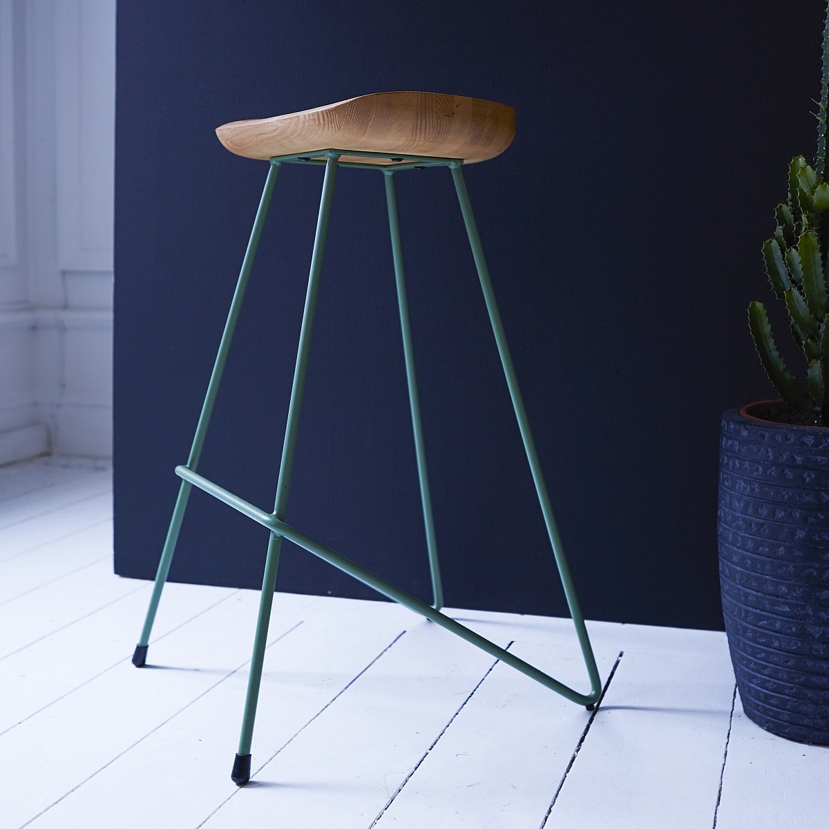 Barhocker 2er Set Samtstoff grün ohne Lehne mit Fußstützen Retro Design Morton