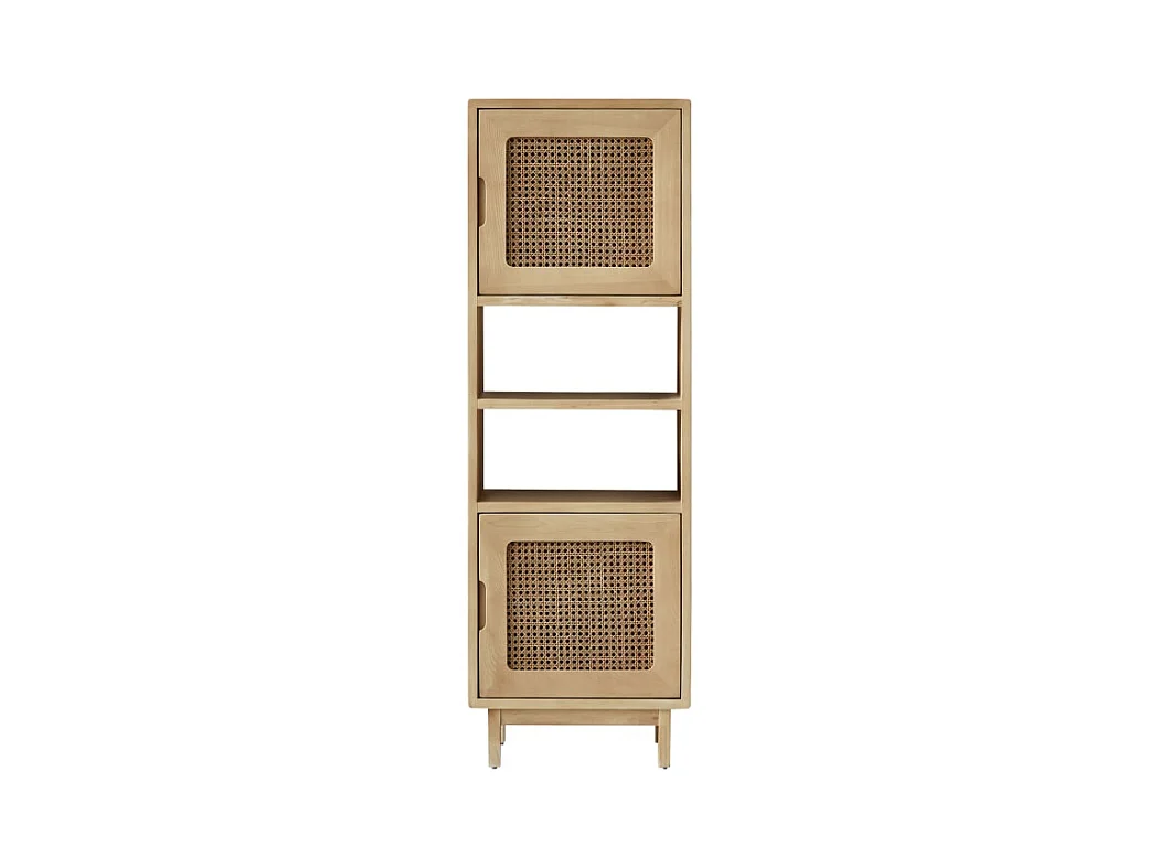 Hoher Kinder-Bücherschrank Luis aus Ulmenholz und Rattangeflecht
