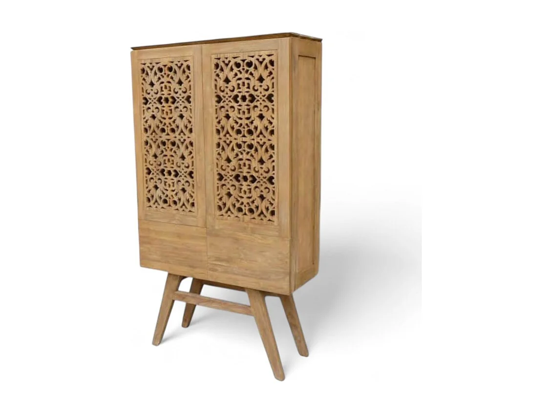 Hoher Schrank aus geschnitztem, recyceltem Teakholz – Kollektion Flores