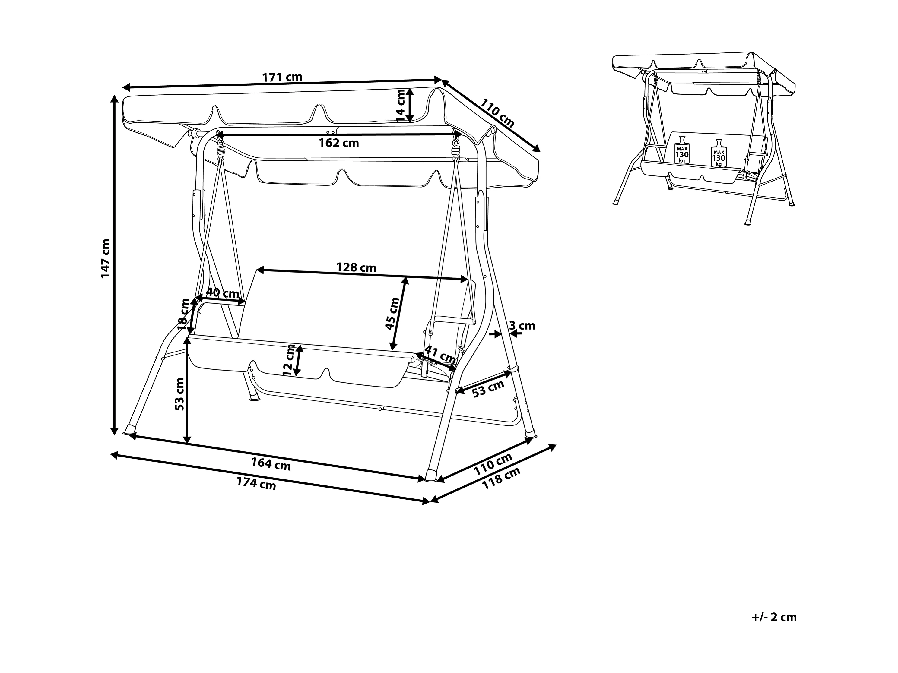 Hollywoodschaukel Gartenschaukel für 2 Personen Sonnendach grau Tesero