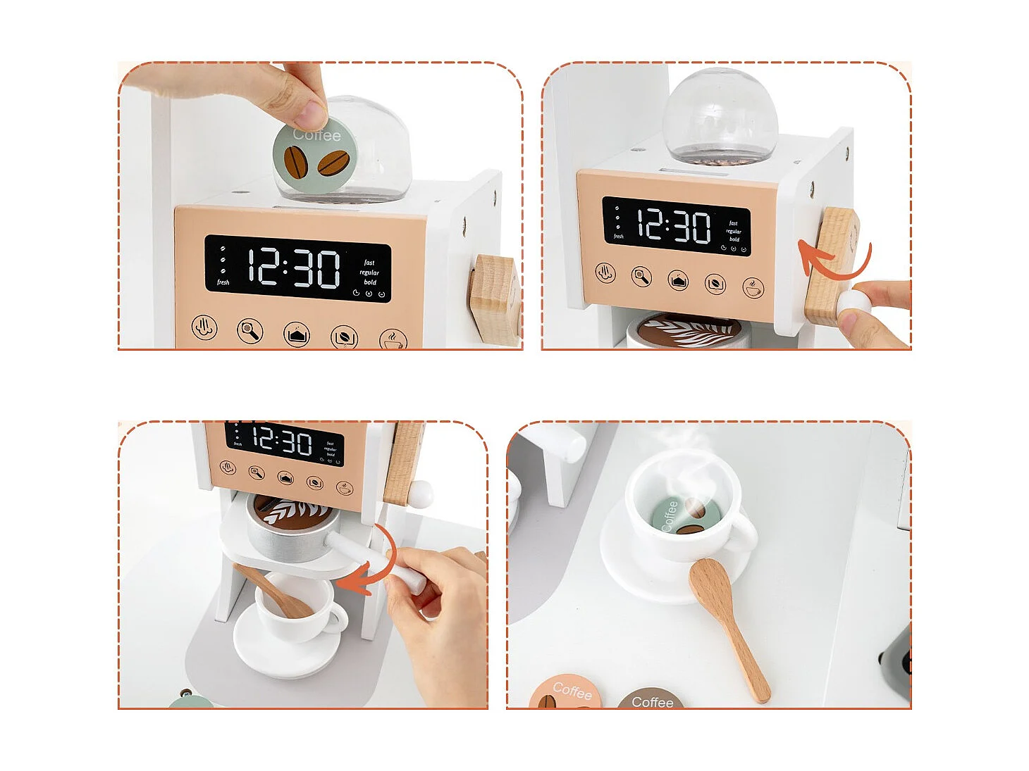 Holz Eck Spielküche mit Sound & Licht & Kaffeemaschine & Rutsche Kleinkind Küchen Spielset Braun