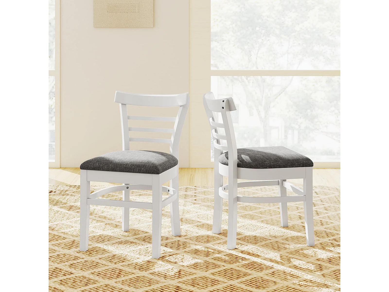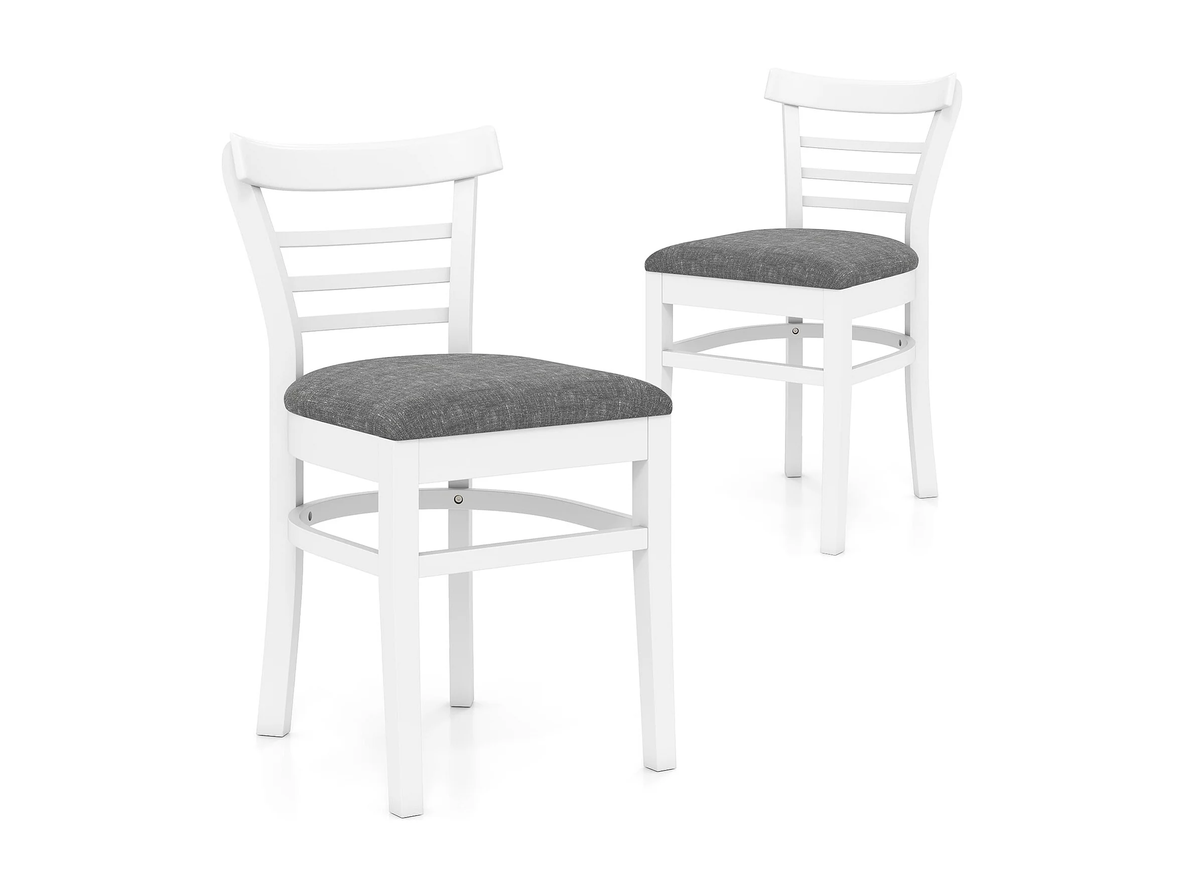 Holz-Esstischstuhlset 2 Kunstleder gepolsterte küchenstühle ohne Armlehnen mit Gummibaumholzbeinen Weiß