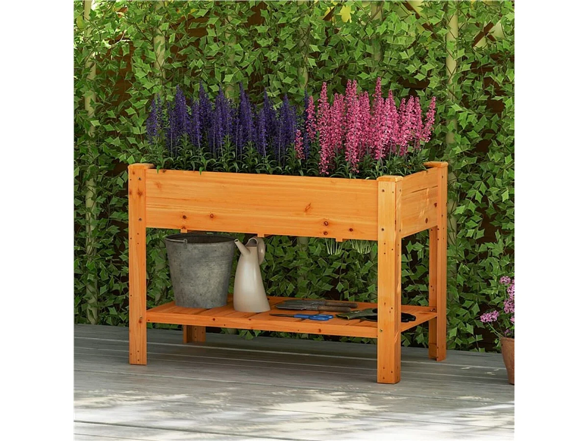 Holz Hochbeet mit Ablage & Entwässerungslöchern Erhöhtes Gartenbeet Pflanzkasten Braun