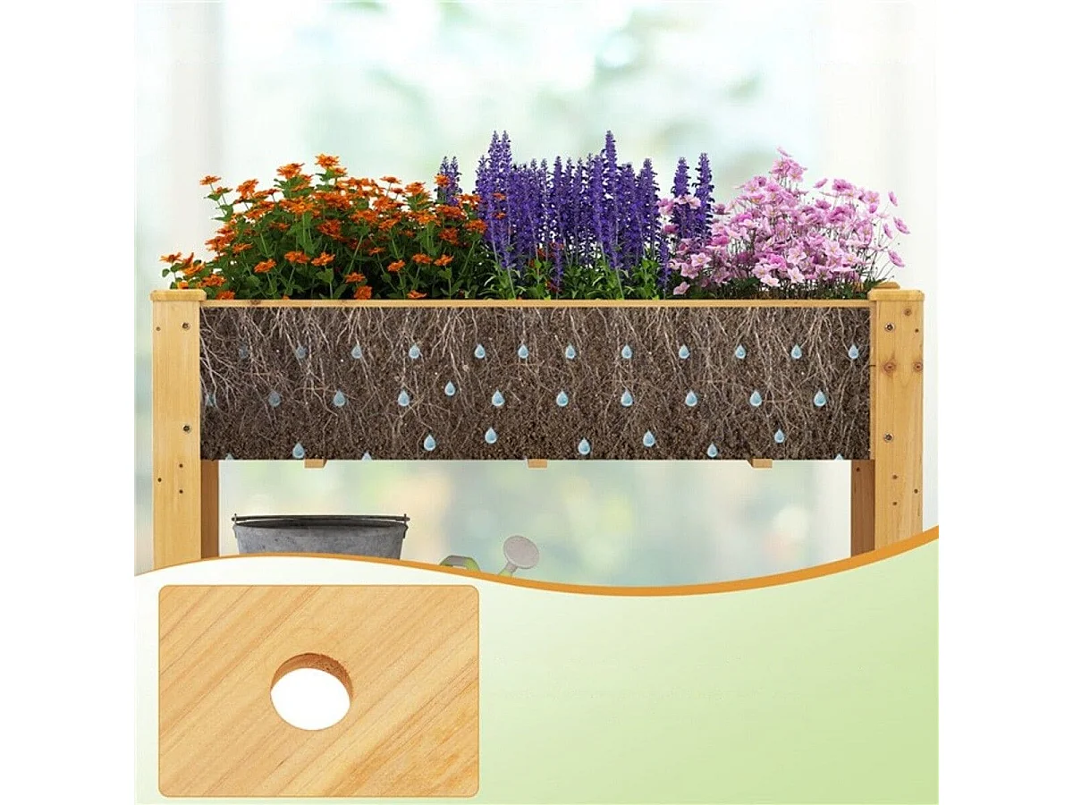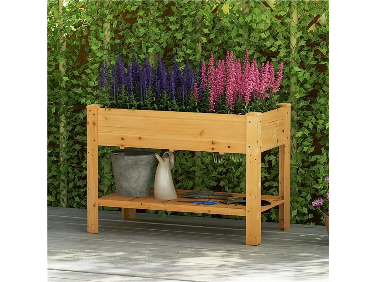 Holz Hochbeet mit Ablage & Entwässerungslöchern Erhöhtes Gartenbeet Pflanzkasten Natur