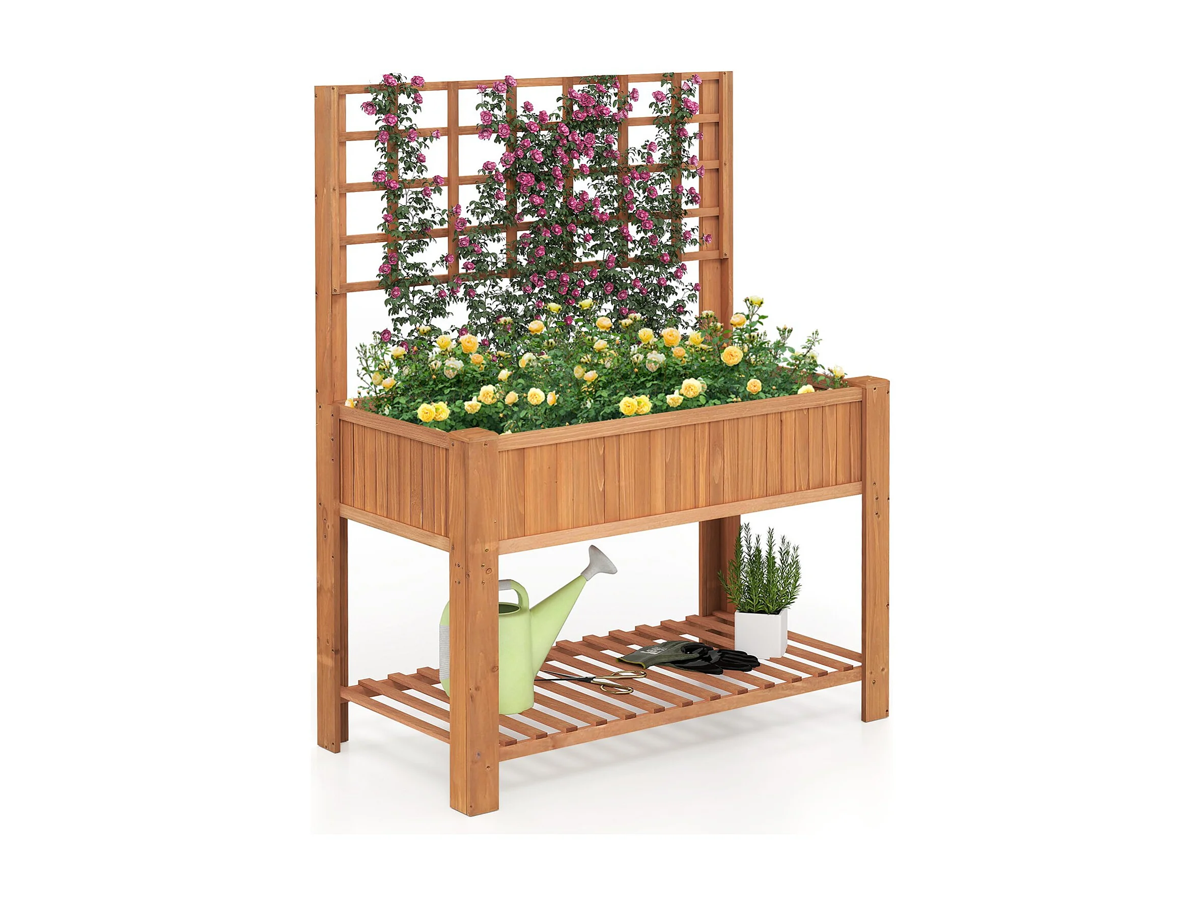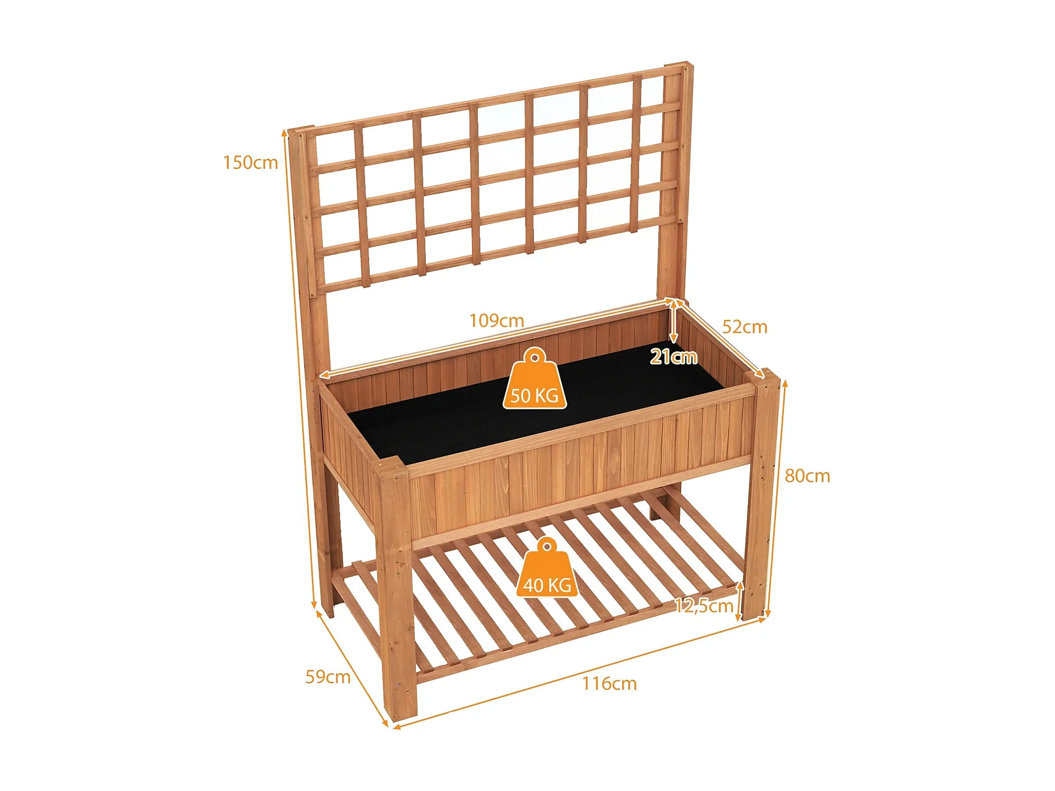 Holz Hochbeet mit Spalier & Ablage Blumenbeet mit Ablauflöchern Gartenbeet Pflanzkasten Braun