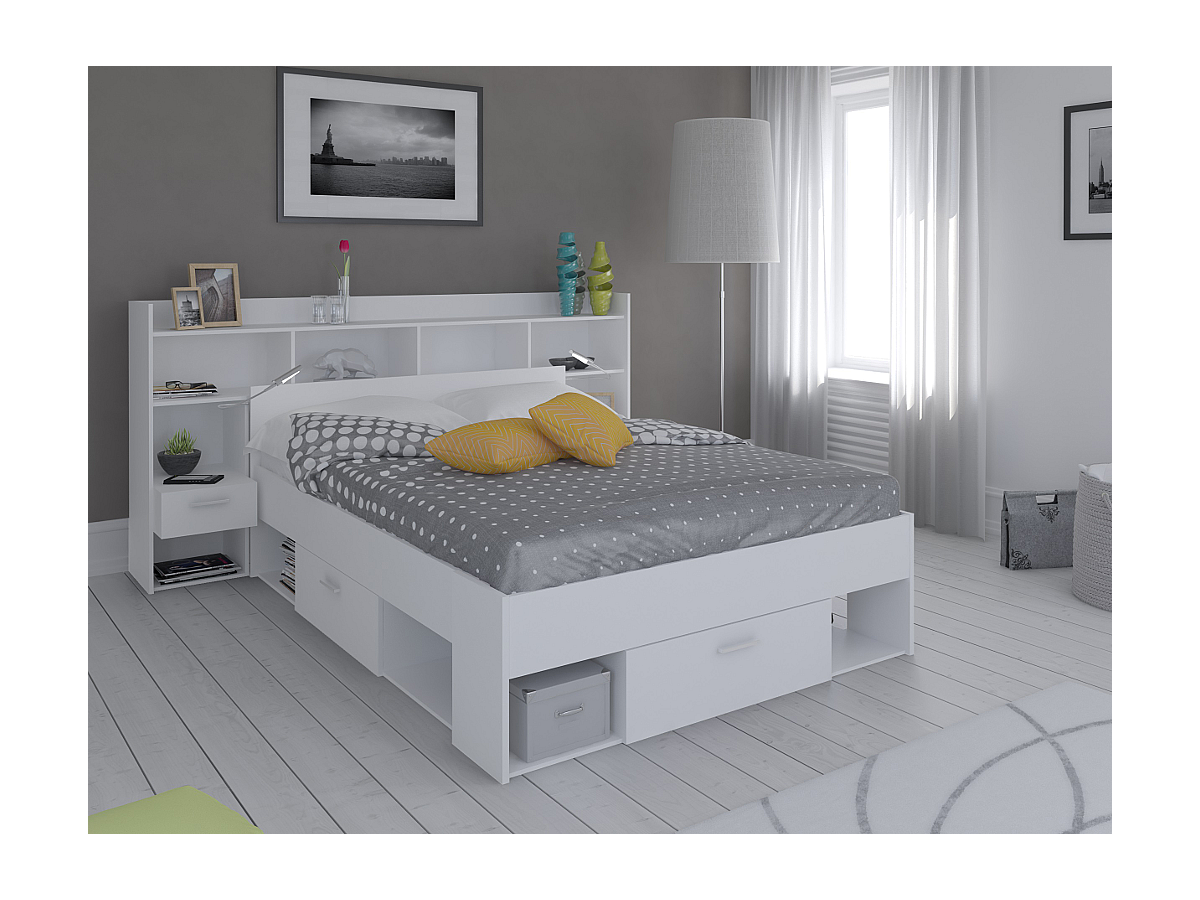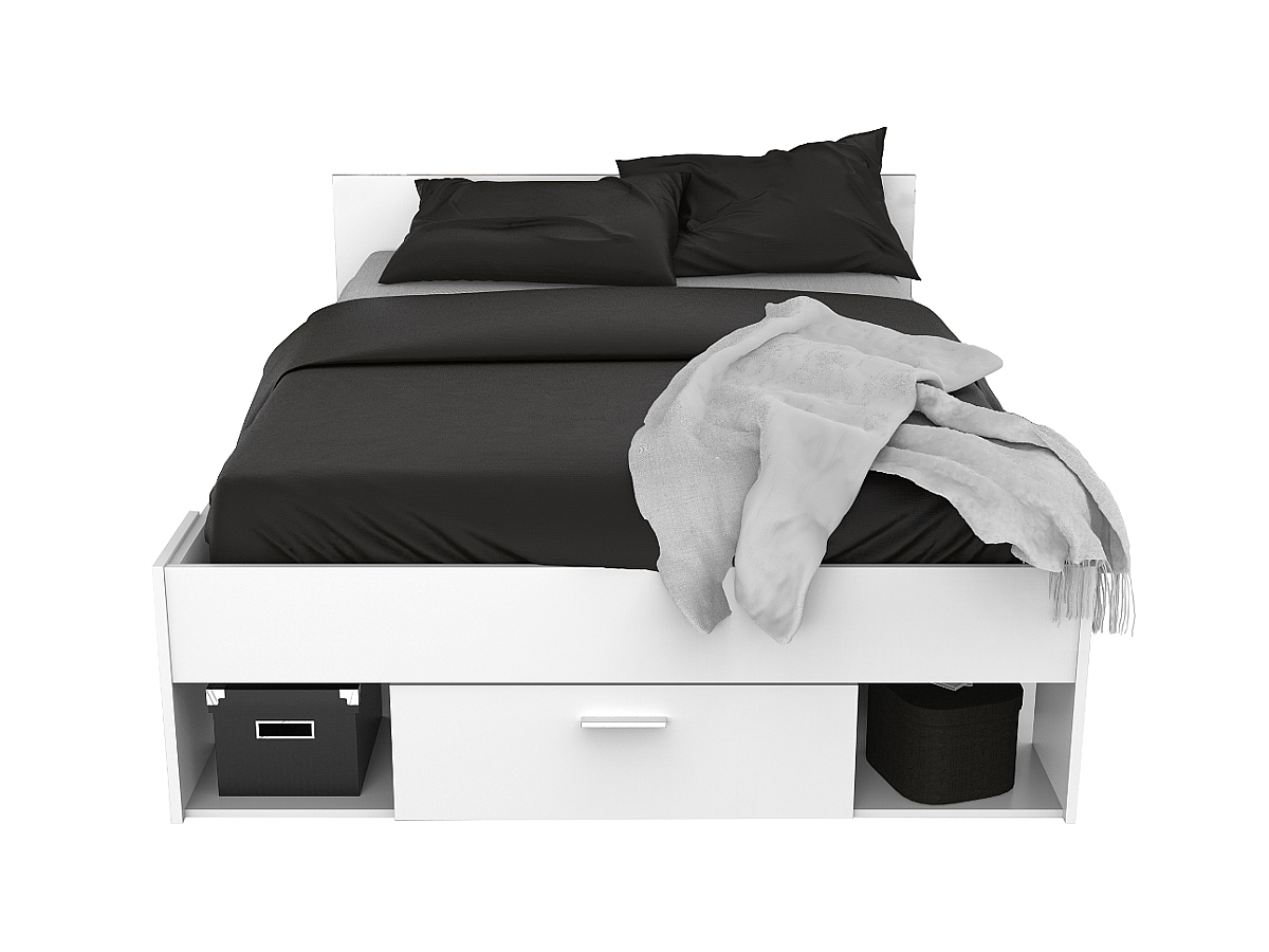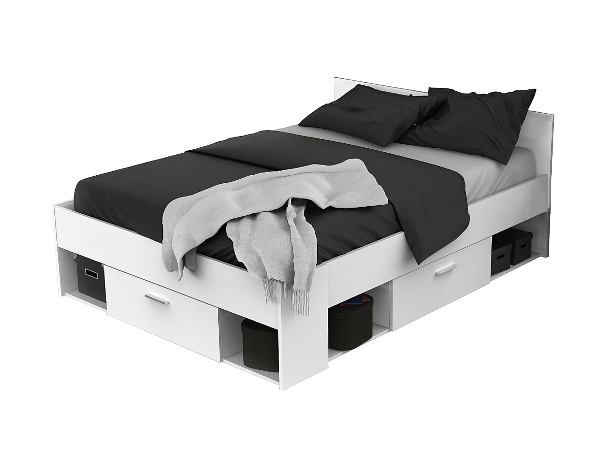 Holzbett mit Stauraum Kylian - 140x190cm oder 140x200cm - Weiß