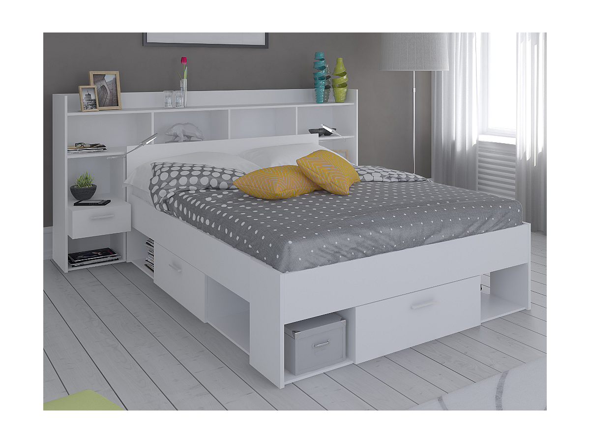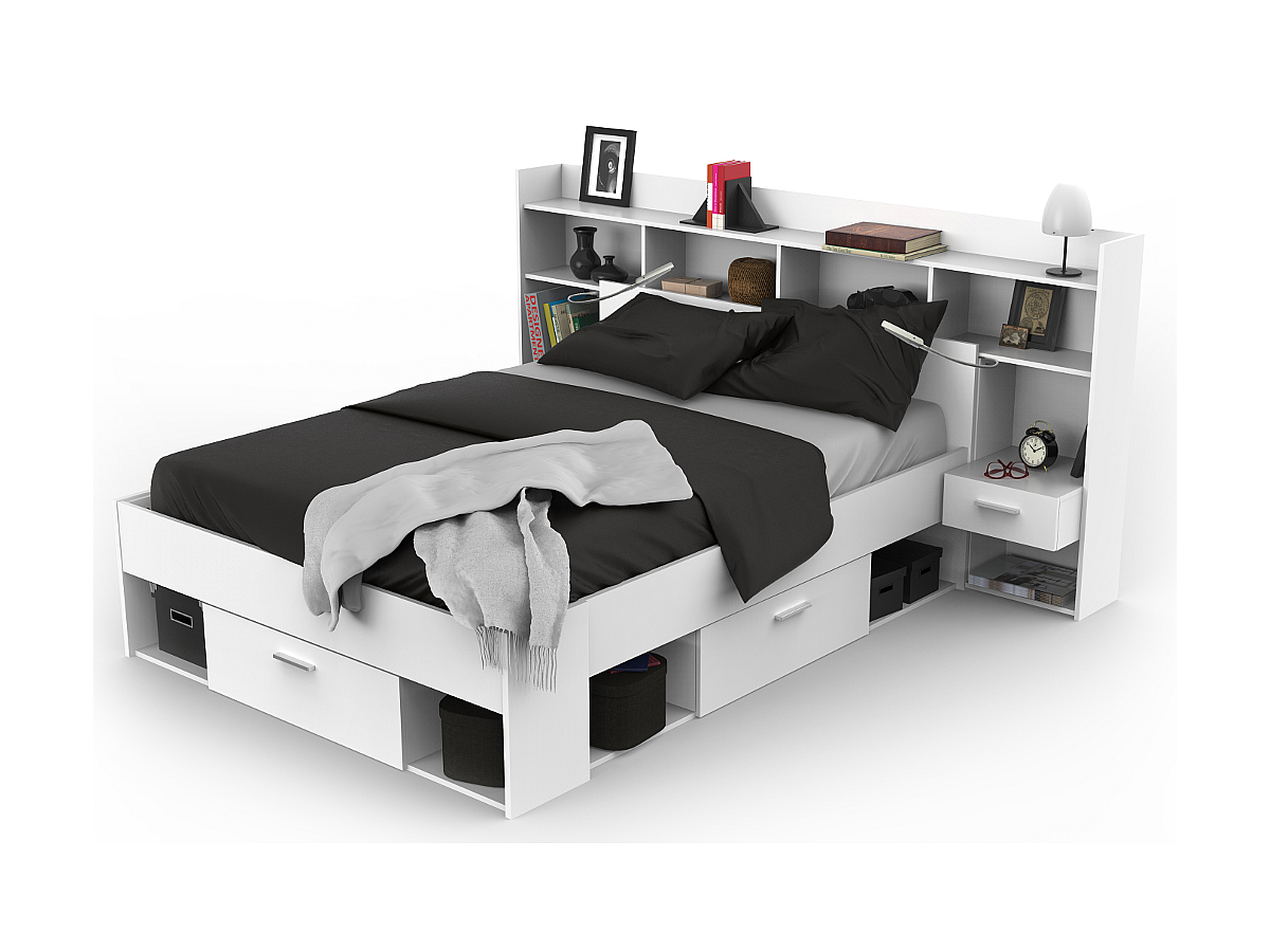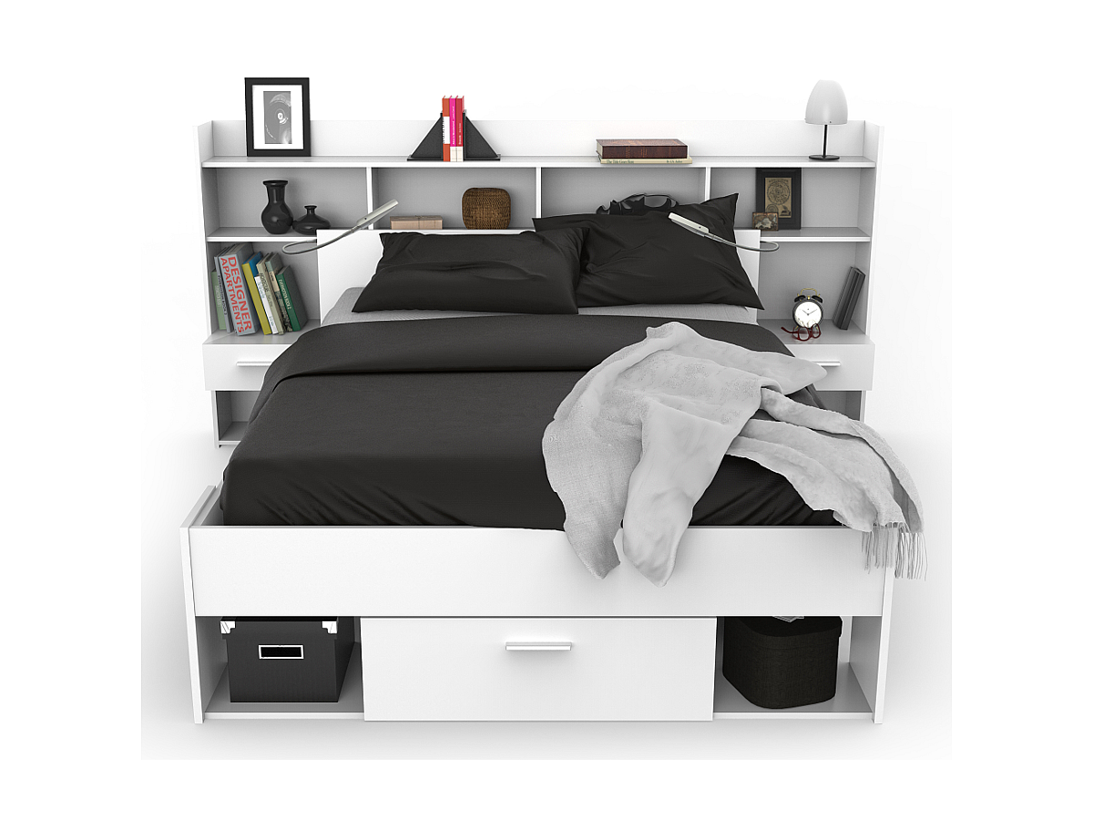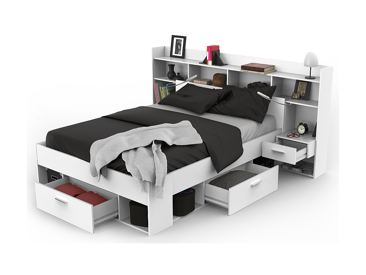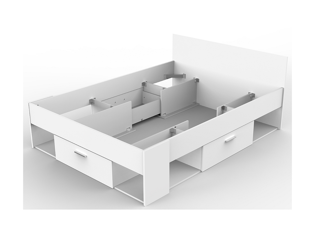 - Aufbau: Bett mit 3 Schubladen und 6 Nischen