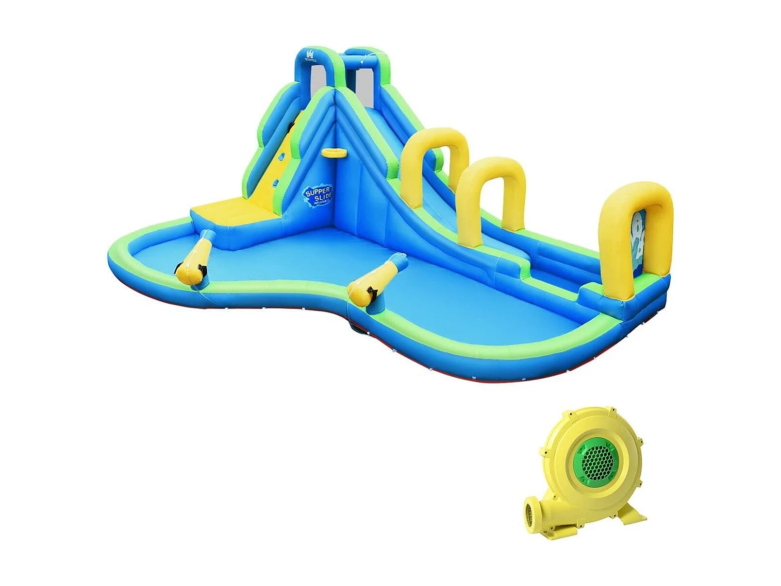Aufblasbarer Wasserrutschenpark mit 2 Pools & 680W Gebläse & Wasserkanone