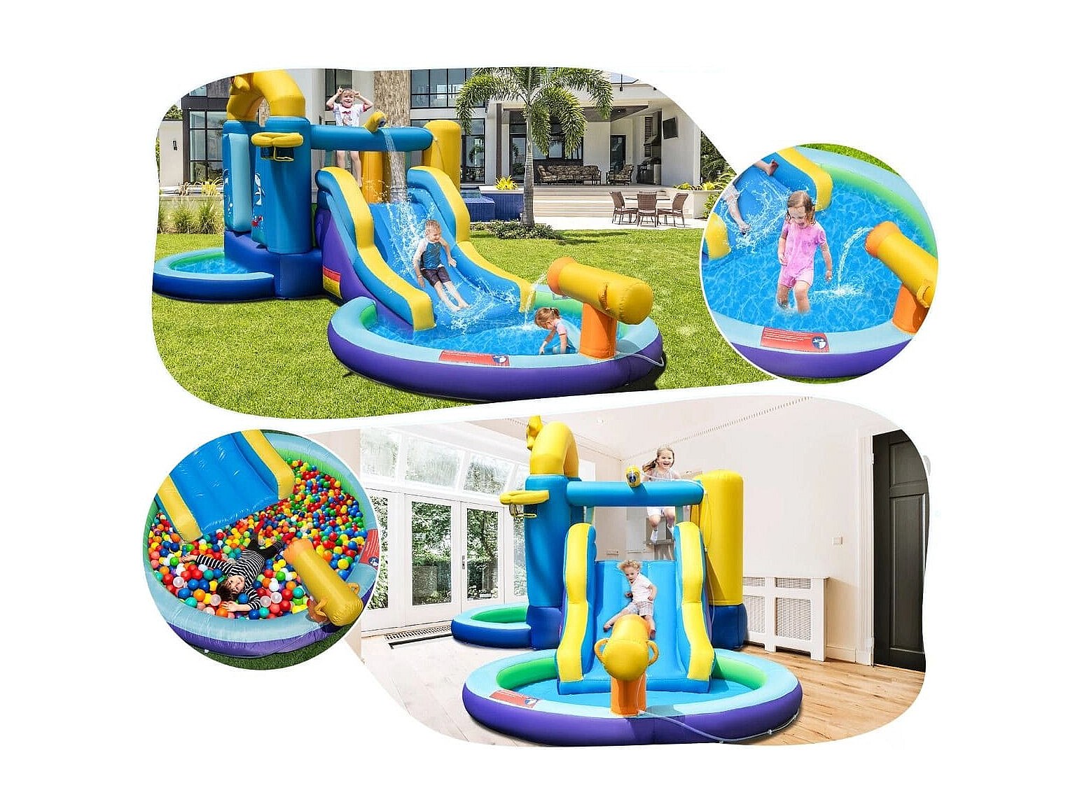 Aufblasbarer Wasserpark 6-in-1 Hüpfburg mit Wasserrutsche 526 x 373 x 203 cm Blau + Gelb