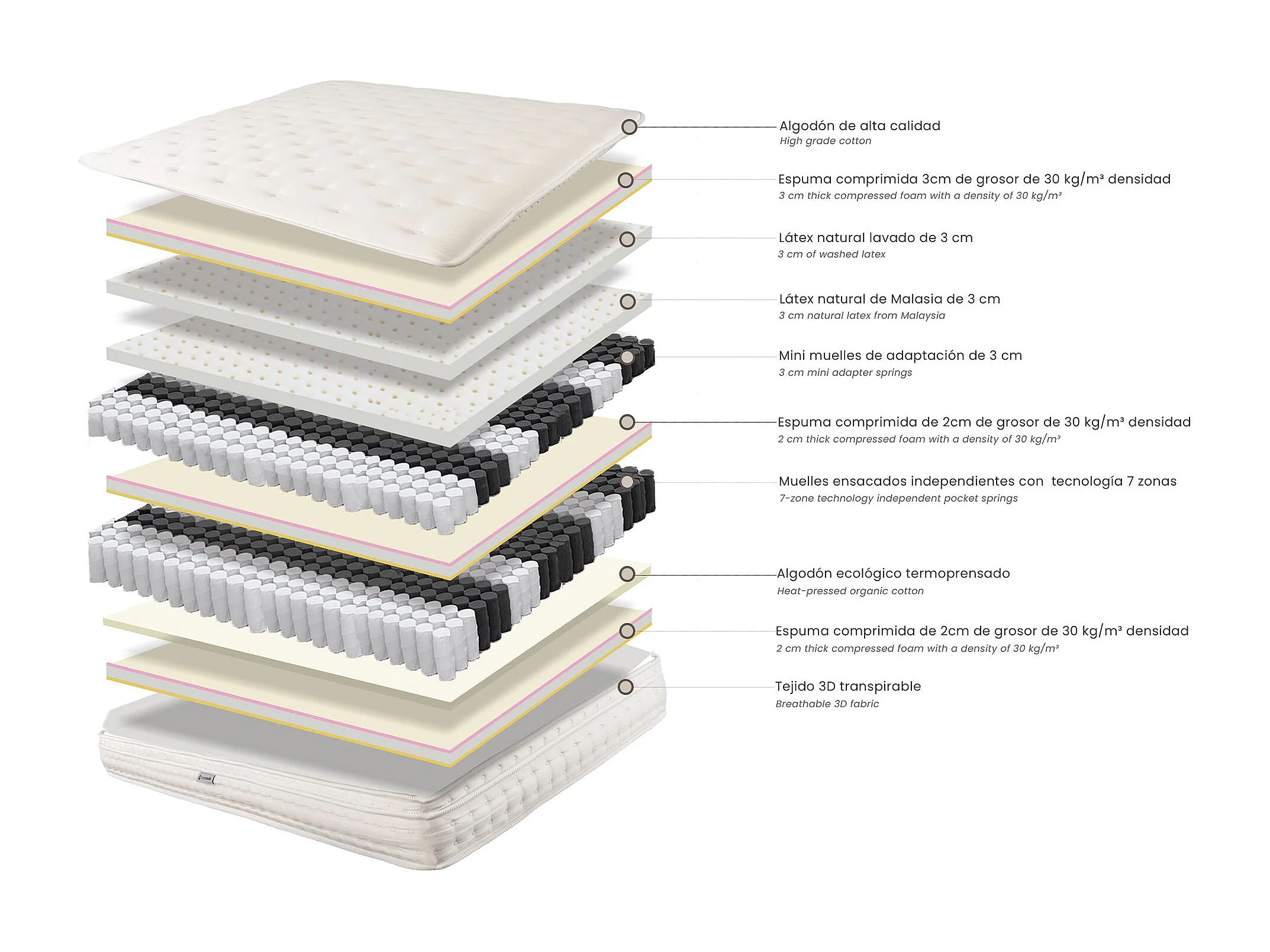 Hybridmatratze aus Naturlatex mit Minifedern und 7-Zonen-Taschenfedern 160x200 7233 ANGEL CERDA